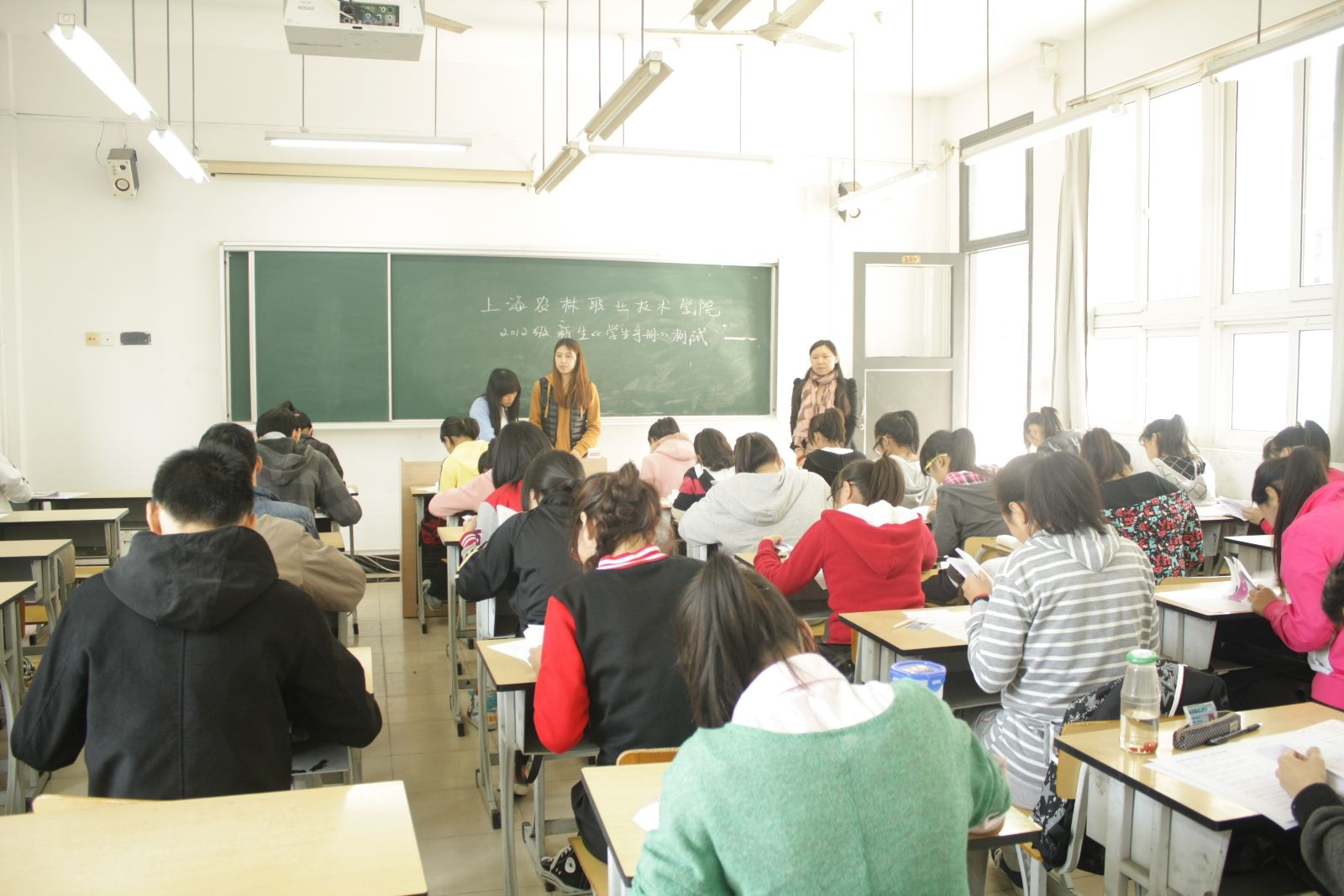 10月31日中午,学院2012级新生《学生手册》测试在第一教学楼举行。本次测试由学生处主办,园艺园林系承办。875名新生参加了测试。