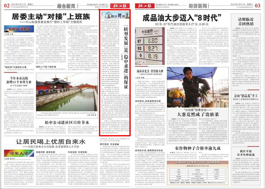 基础部徐亚斌老师长期向《松江报》撰稿,并引起社会普遍关注和反响。3月21日《松江报.综合新闻版》刊登了徐亚斌老师题为“‘转型发展’是‘稳中求进’的保证”的文章。