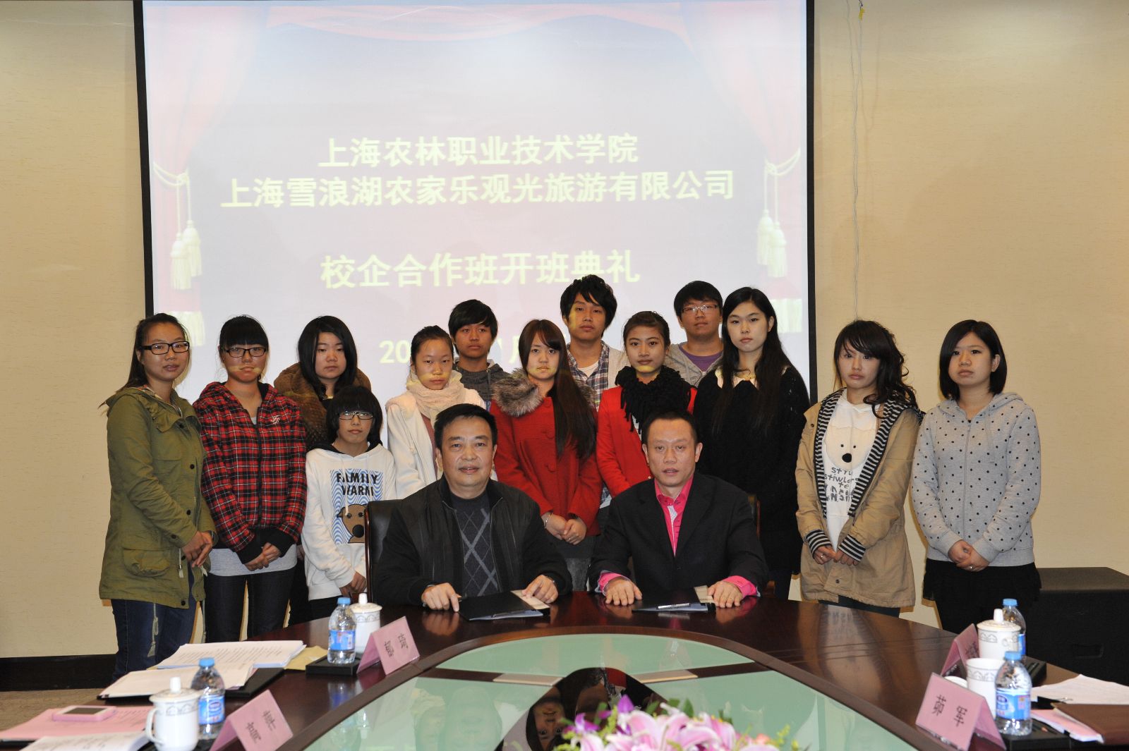 11月9上午,商务旅游管理系校企合作“上海之根农业旅游班”开班典礼在上海雪浪湖农家乐观光旅游有限公司举行。学院副院长谢锦平、上海雪浪湖农家乐观光旅游有限公司董事长朱相梯出席典礼,学院校企合作办主任辛雅芬、商务旅游管理系主任高萍及该班13名新生参加了仪式。