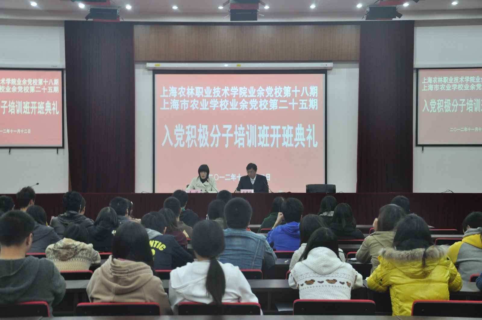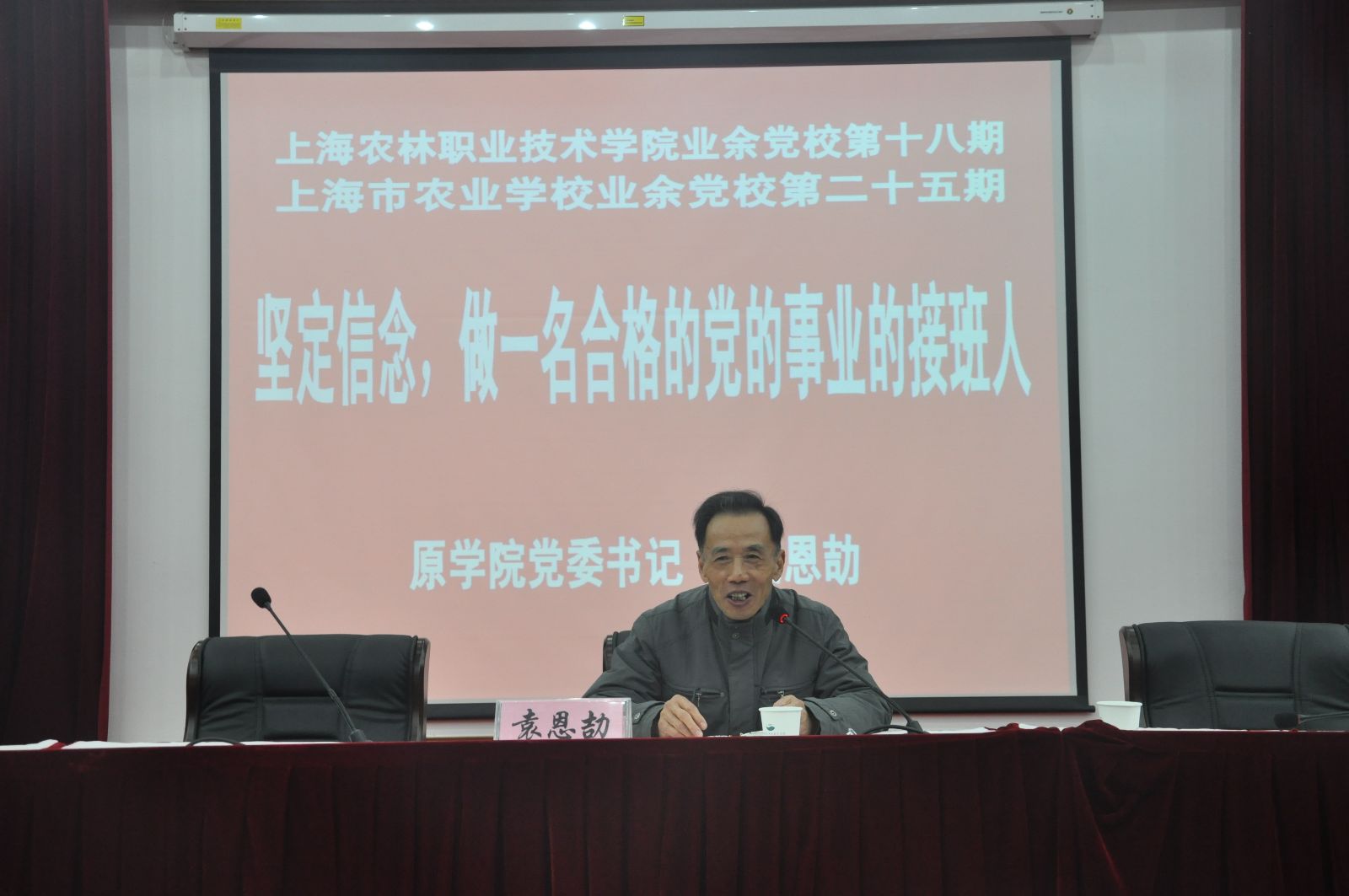 11月12日晚上,上海农林职业技术学院第十八期、上海市农业学校第二十五期业余党校在综合教学楼学术报告厅开班。开班典礼由院党委副书记俞锦禄作开班动员,原上海市农业学校党委书记袁恩劼出席,并作了“坚定信念,做一名合格的党的事业接班人”的主题报告,来自五个系部的108名学生入党积极分子参加了培训。