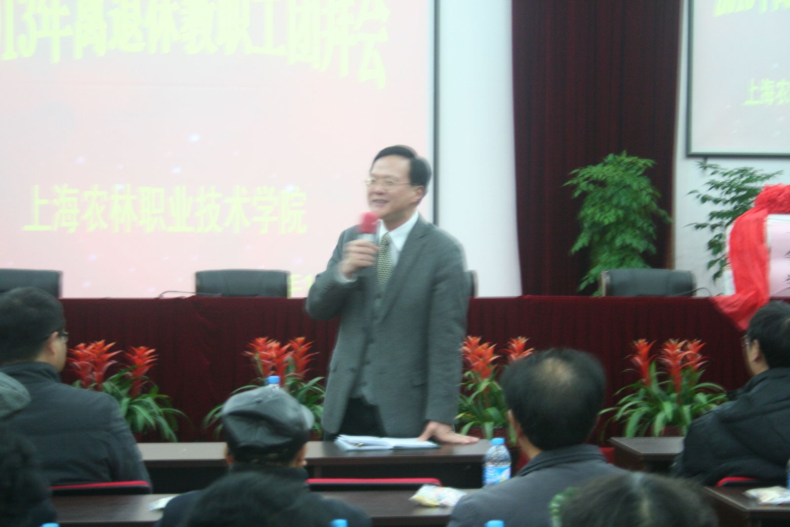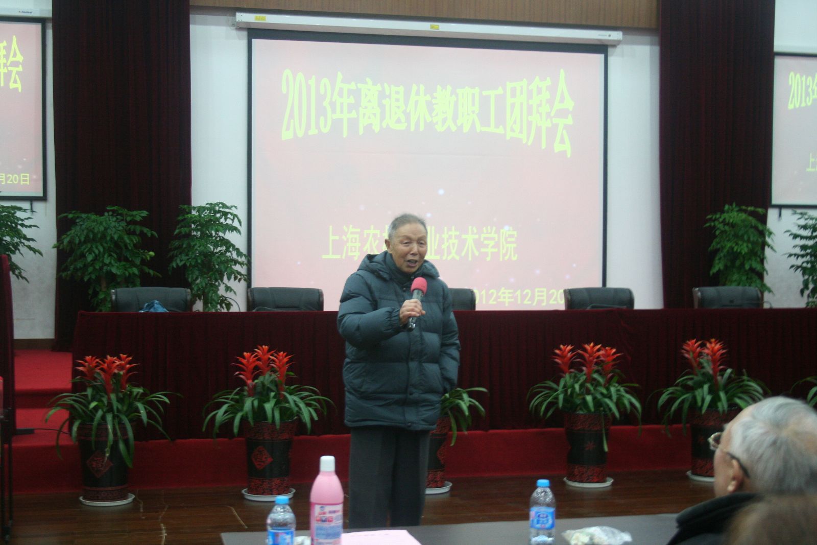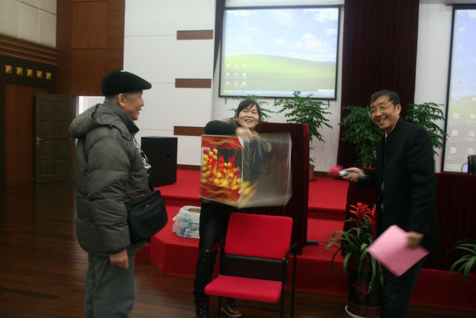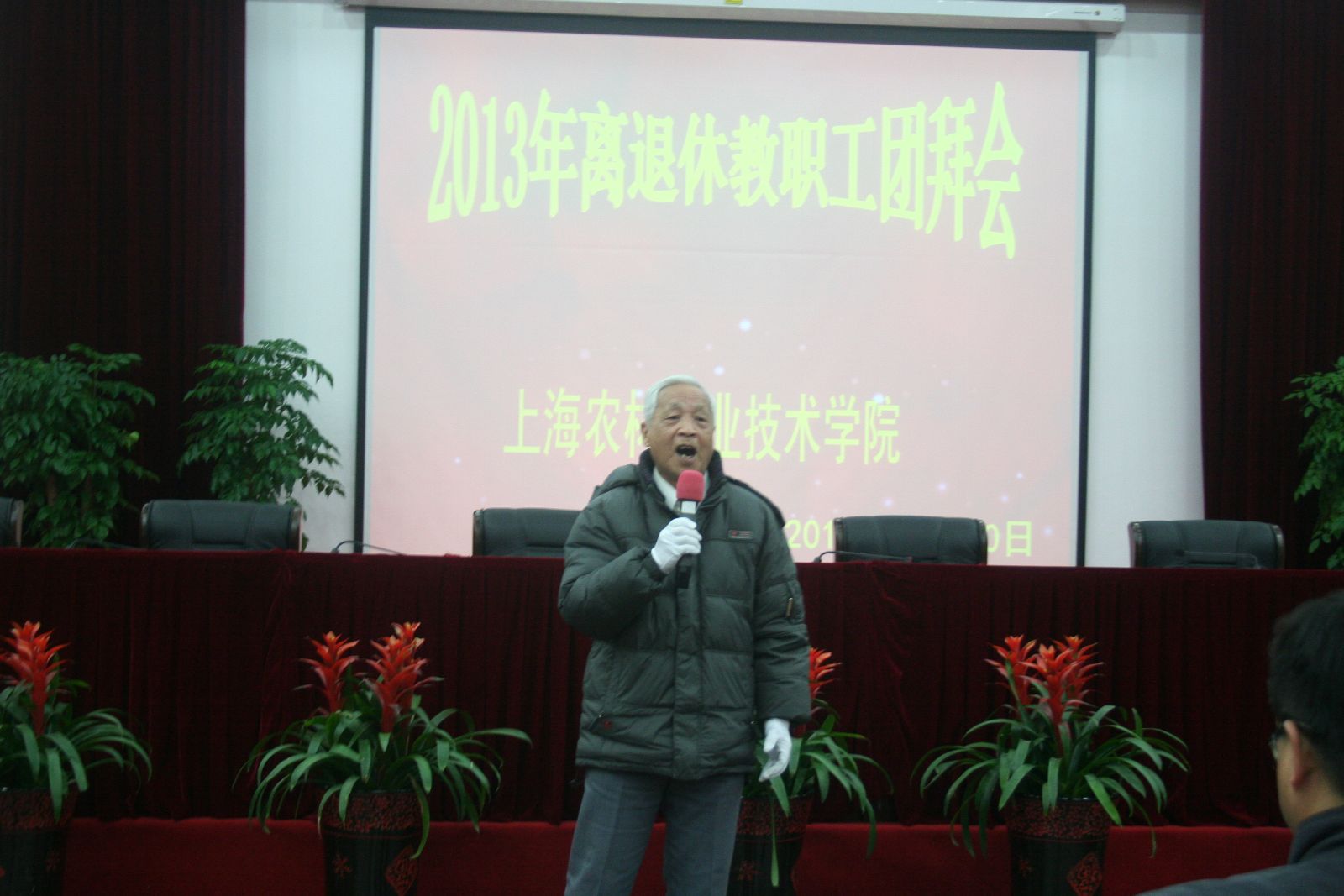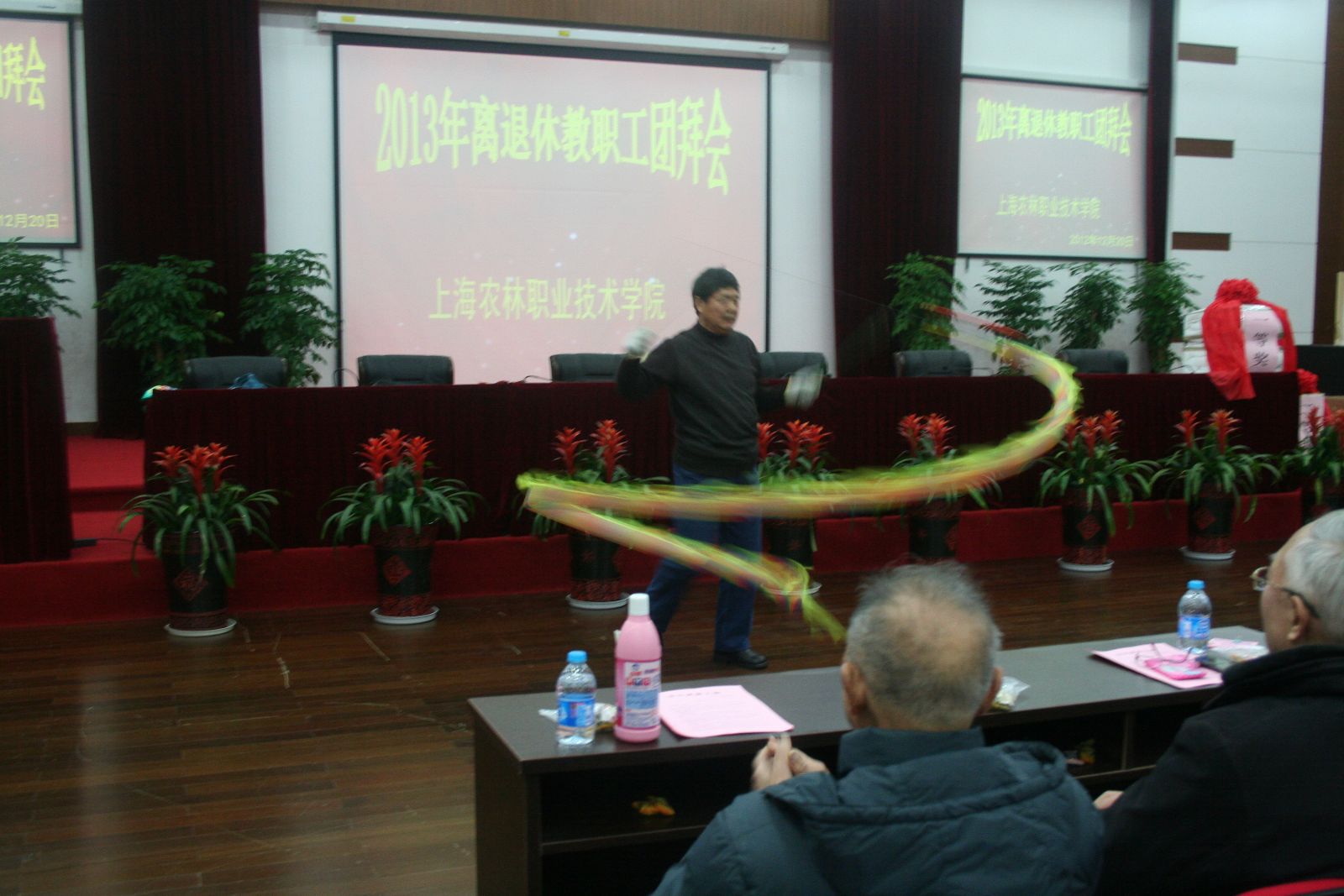 12月20日,离退休职工迎新团拜会在综合楼205报告厅举行。学院领导魏华、俞锦禄、谢锦平、高功辉和女工委员们一起接待离退休职工,并亲切交谈。140多位离退休职工在交流、游戏、抽奖和表演中迎接新年到来。