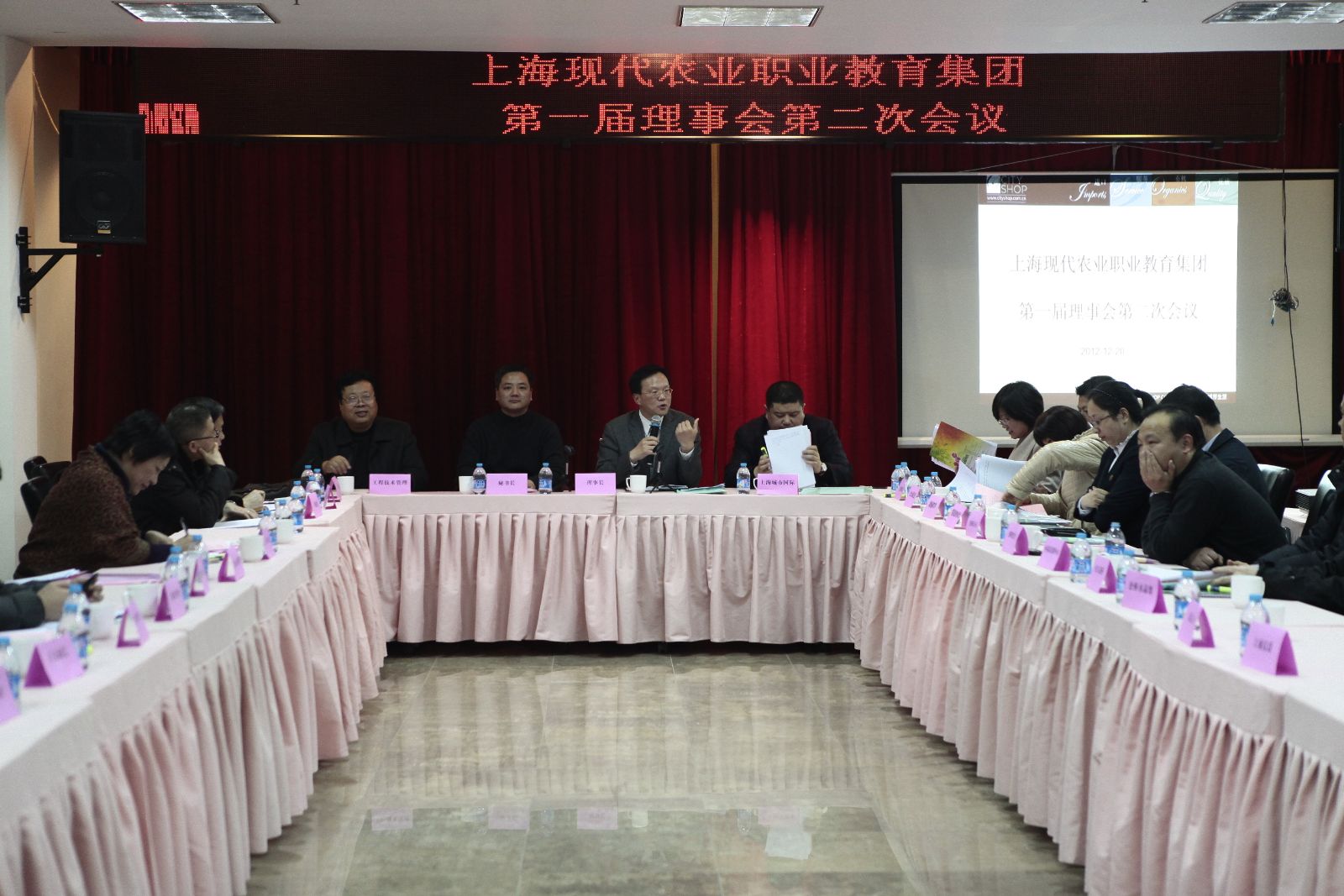 2012年12月20日,上海现代农业职业教育集团顺利召开一届二次理事会议。职教集团理事长魏华,来自上海城市国际发展有限公司、光明食品集团上海五四有限公司、上海光明荷斯坦牧业有限公司、上海种业(集团)有限公司、上海海利生物制药有限公司、上海鲜花港企业发展有限公司、嘉兴职业技术学院、上海市工程技术管理学校、上海市林业总站、上海市家禽行业协会、上海食品科技学校等41家理事单位代表出席了会议。会议由黄辉秘书长主持。
