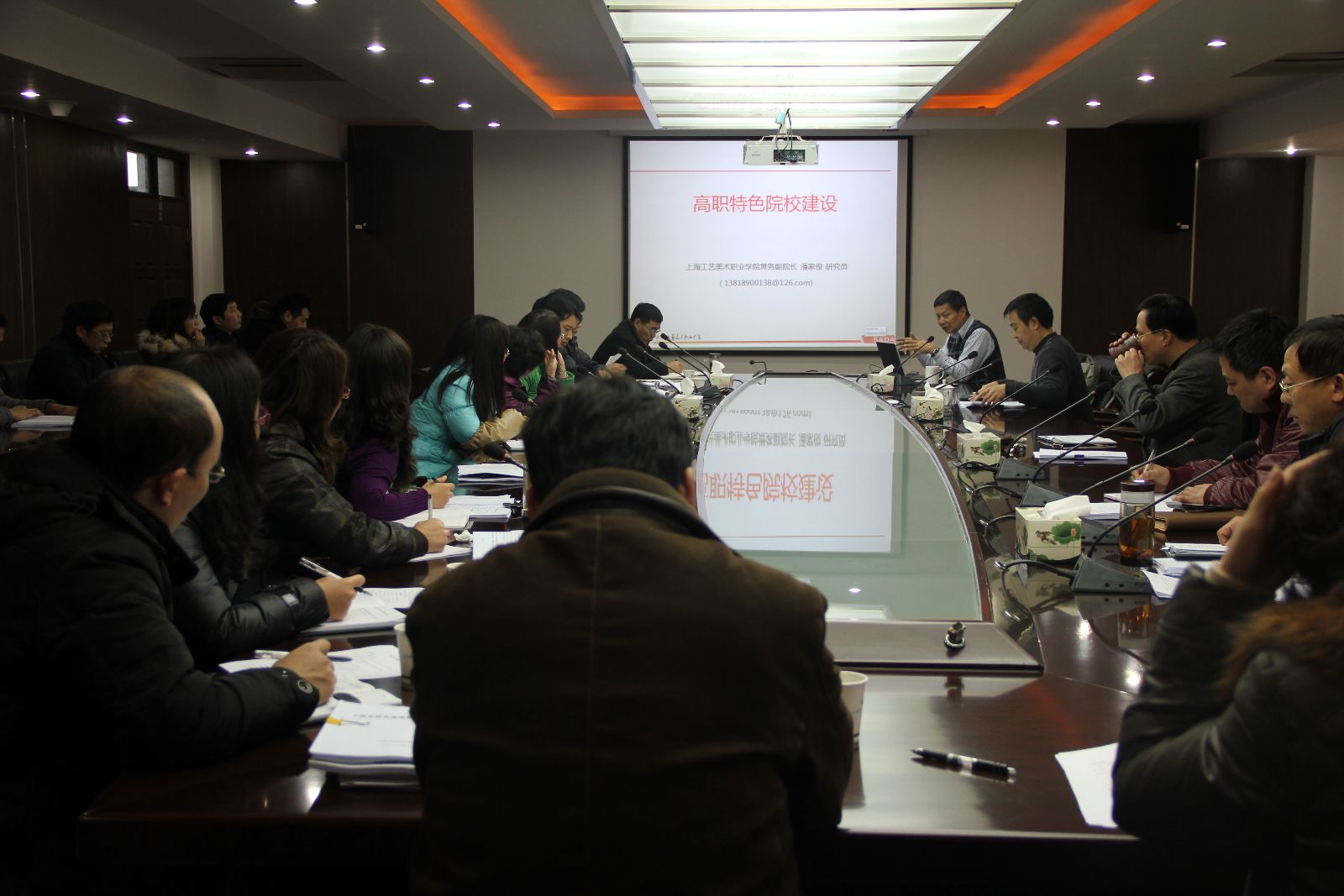 “他山之石,可以攻玉”,为了学习兄弟院校宝贵经验,切实推进特色校建设工作,12月28日下午,我院特邀上海工艺美术职业学院常务副院长潘家俊研究员来校进行座谈交流。院长魏华、上海市农广校副校长费强、学院副院长谢锦平、市农校副校长黄辉出席会议,特色校推进组责任部门负责人、专业带头人及教师代表参加会议。