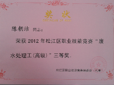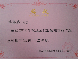 日前获悉,动物科学技术系环境监测与治理技术专业6名学生在松江区2012年职业技能竞赛“废水处理工(高级)”项目比赛中获奖,其中王颖同学获得“一等奖”、“松江区技术能手”和“松江区青年岗位能手”称号,姚磊磊和董燕同学分获“二等奖”,陈朝洁、金飒和严佳倩三位同学获得“三等奖”。这是继2010、2011年之后,环境专业学生再次有6名学生在此项竞赛中“一、二、三奖”皆有斩获。获证率高达98%,较去年提高了约6个百分点。