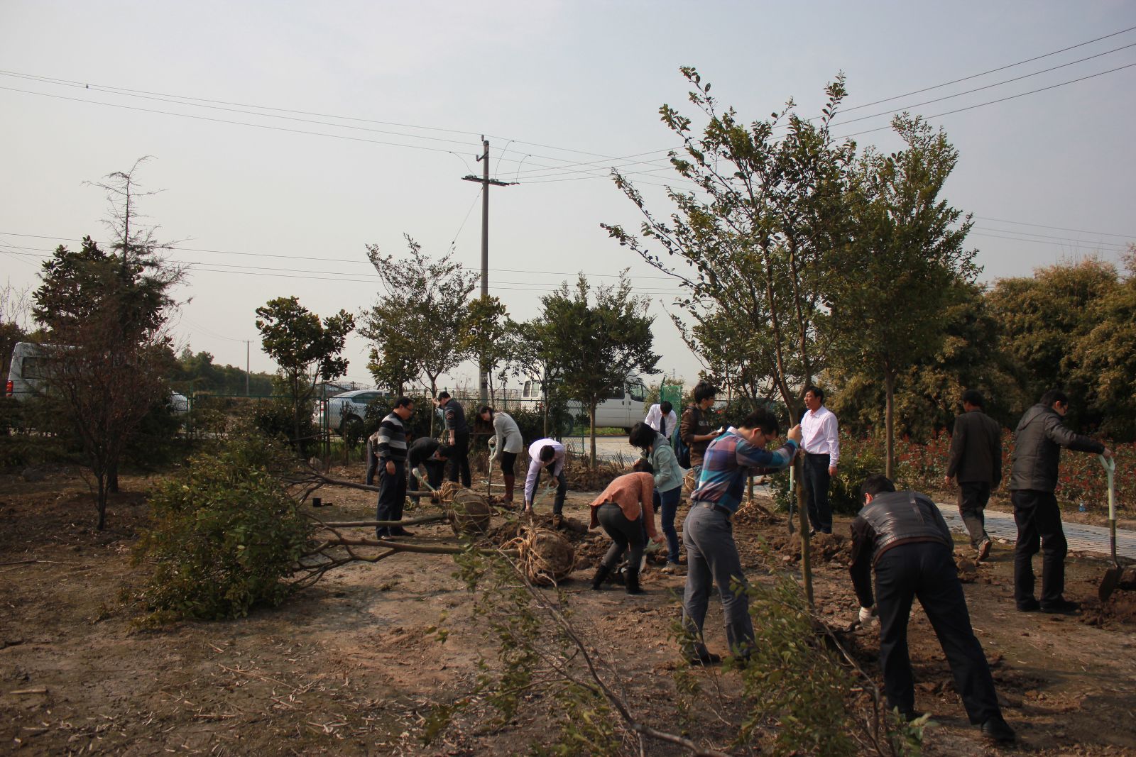 大家拿起铁锹,投入到植树劳动中。挖坑、扶苗、培土、浇水,一同种下树苗,基地中一派热火朝天的景象。经过1个多小时的劳动,共种植了20余株蚊母树。