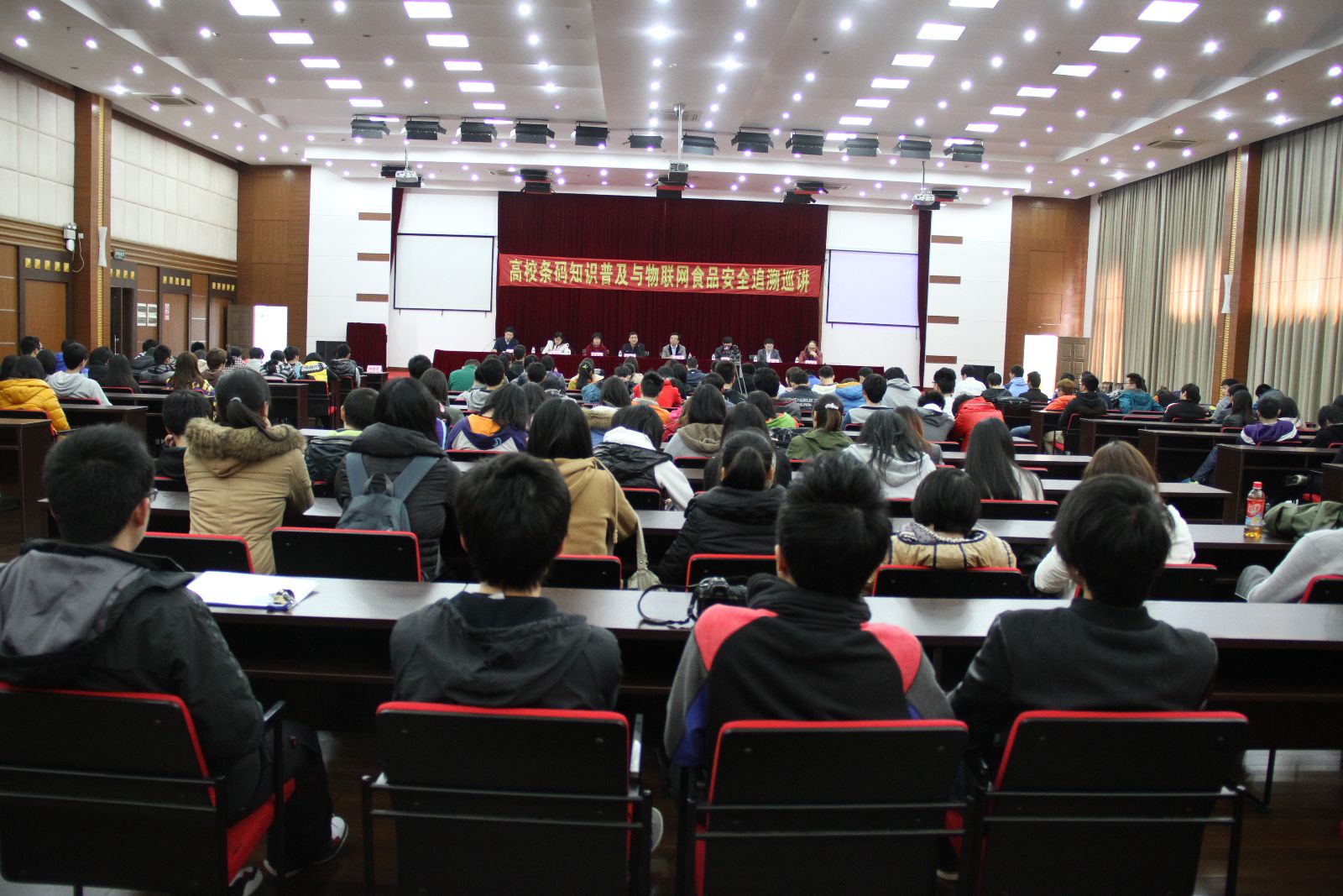 授牌仪式结束后全国大学生条码自动识别技术知识竞赛组委会邀请专家以物联网食品安全追溯为主题为我院师生做了三场别开生面的学术报告,通过学术报告同学们增强了为农服务的意识,深化了专业课程的学习。