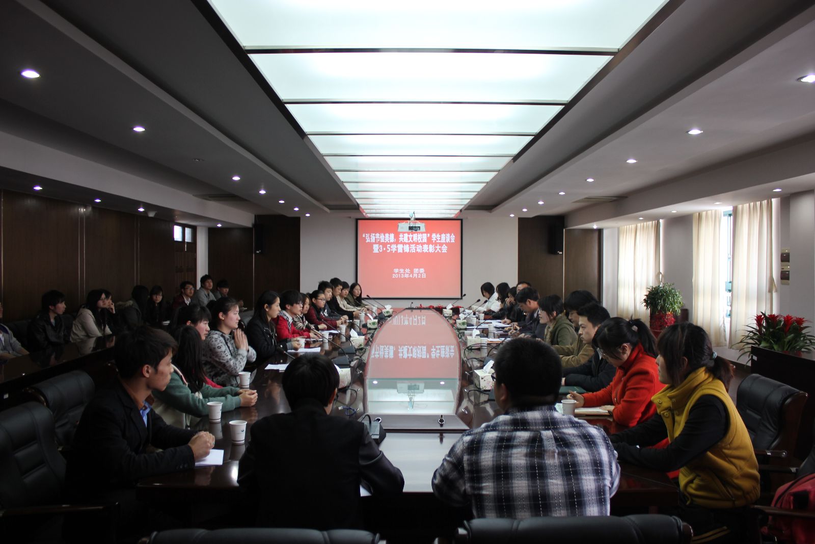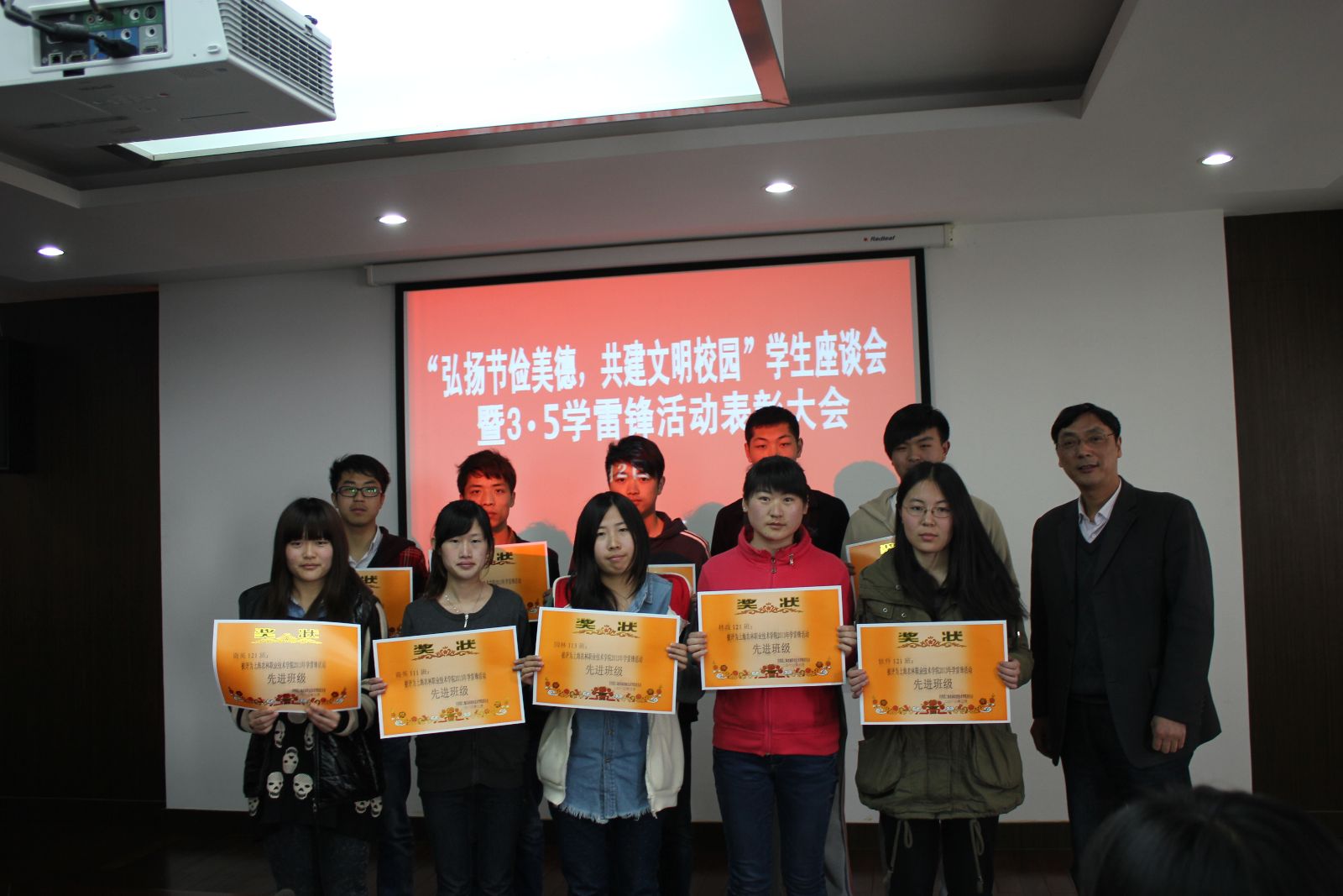 4月2日,为贯彻落实党的十八大精神,团委在综合教学楼1101会议室举行了“弘扬节俭美德,共建文明校园”学生座谈会暨3·5学雷锋活动表彰大会,党委副书记、副院长俞锦禄出席,学生处处长陈谊,各系师生代表等40余人参加了会议。团委负责人许昊主持会议。