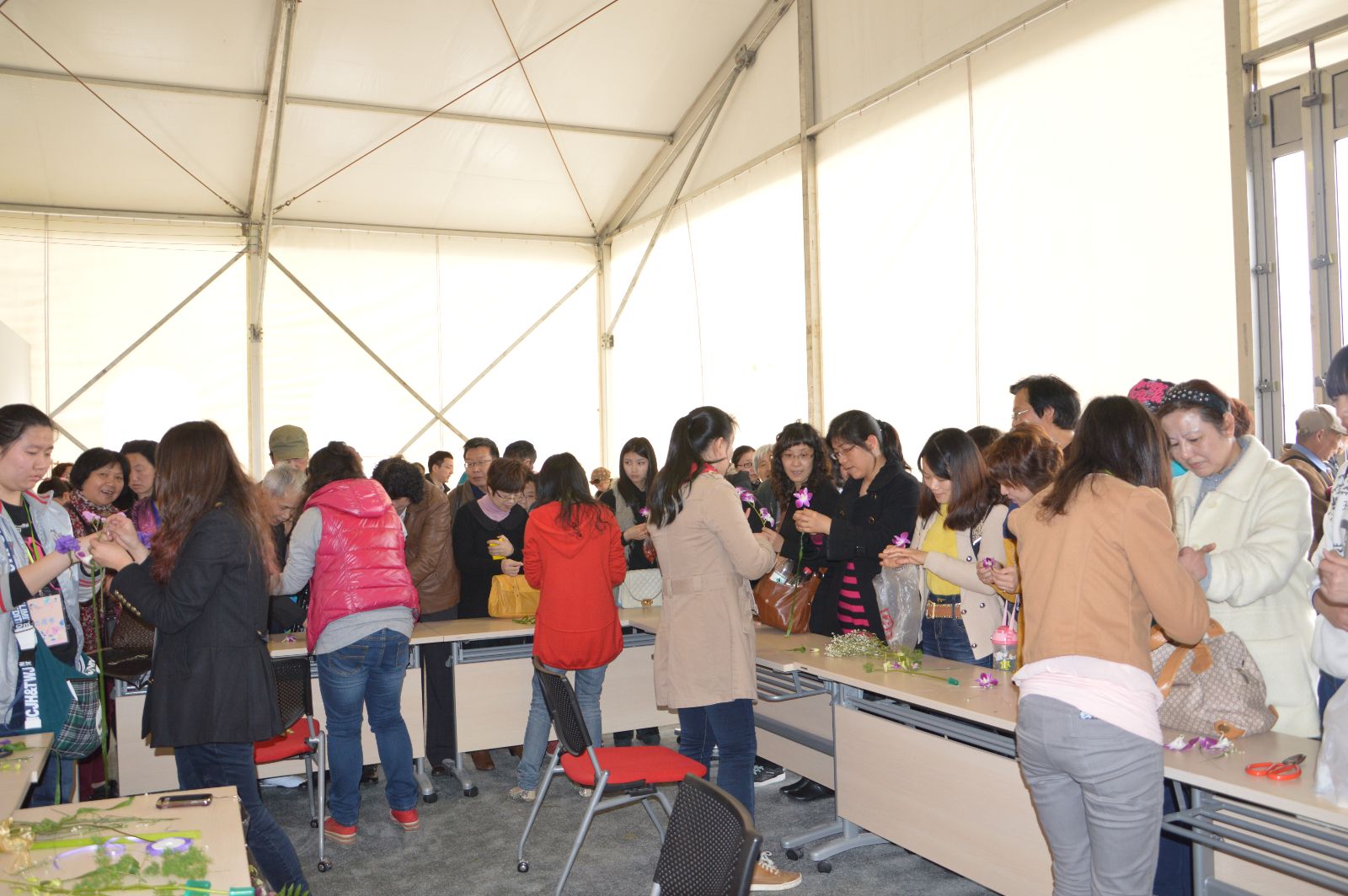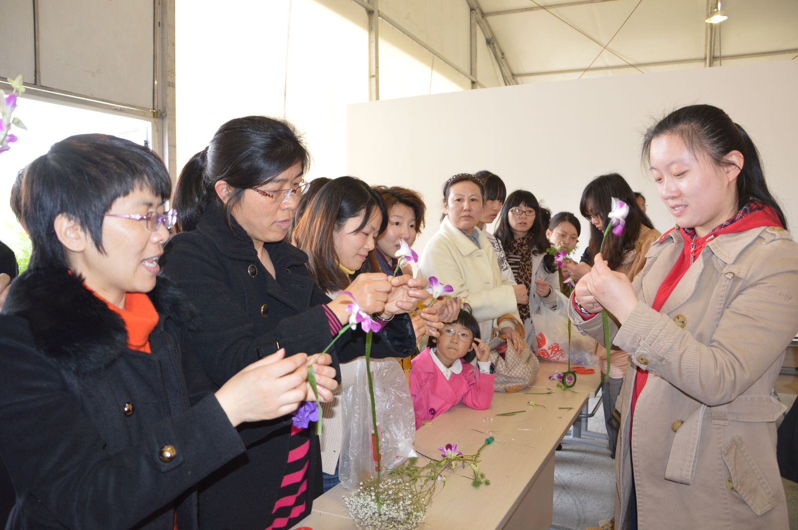 首届上海国际兰展近期在上海辰山植物园举行。园艺园林系与辰山植物园合作,在兰展区内开辟了一片特殊的场地——花艺工坊。10多位心灵手巧的志愿者教游客亲手制作花环、手环和胸花等装饰品,吸引了大批游客的驻足参与,志愿者与游客一起开启浪漫的花艺旅程,受到小朋友和白领的特别青睐,看到这种互动活动,就连见多识广的老外参展人员也对志愿者竖起了大拇指。