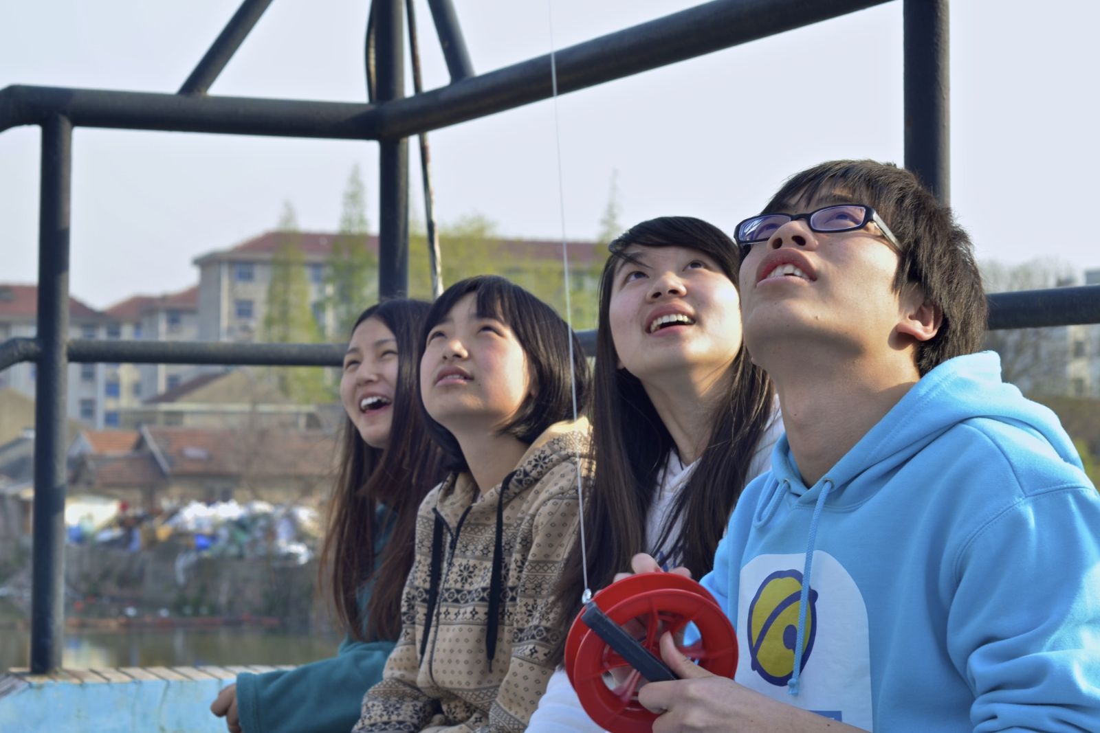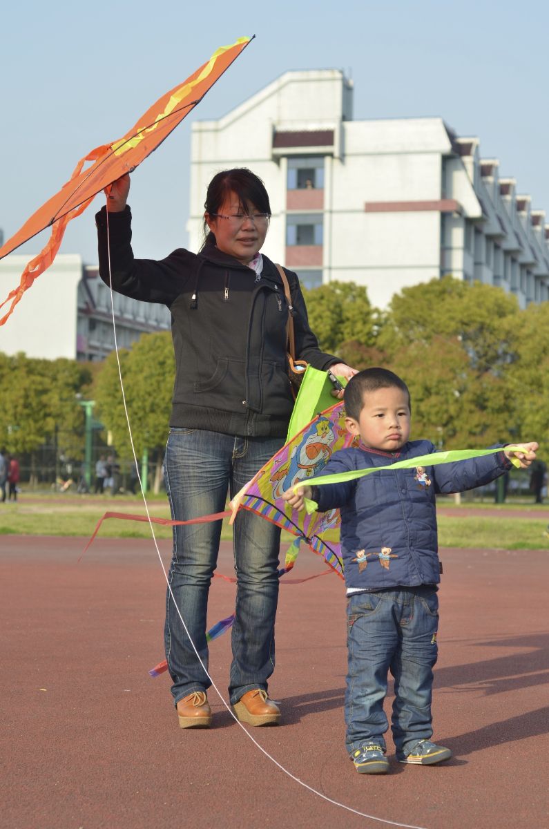 风筝节吸引了众多师生和周边社区居民的参与。下午4时许,操场上逐渐热闹起来。伴随着悠扬的音乐,越来越多的人们或带着自己的风筝逆风奔跑,或低头理线,做着准备工作。更有技术高超的同学,早已把风筝放飞上空,惬意的坐在草坪上抬头仰望。时不时会有人跑到活动组织部来请求加线。开心、兴奋,写在每一个人的脸上。