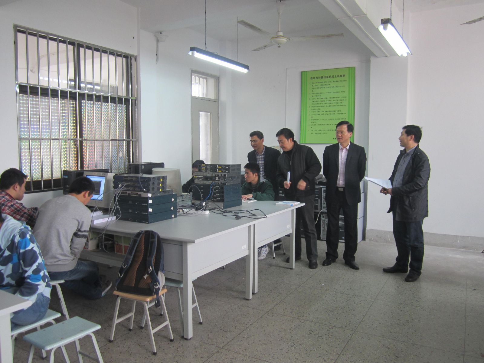 近日,院长魏华、副院长谢锦平在教务处主任王彤光的陪同下,就2013年全国职业院校技能大赛的备战工作进行指导。学院领导实地查看了信息与计算机系的竞赛工作室,仔细了解了备战全国职业院校技能大赛的计划安排,并与参赛同学交谈、了解大赛准备情况及学习生活方面需求。