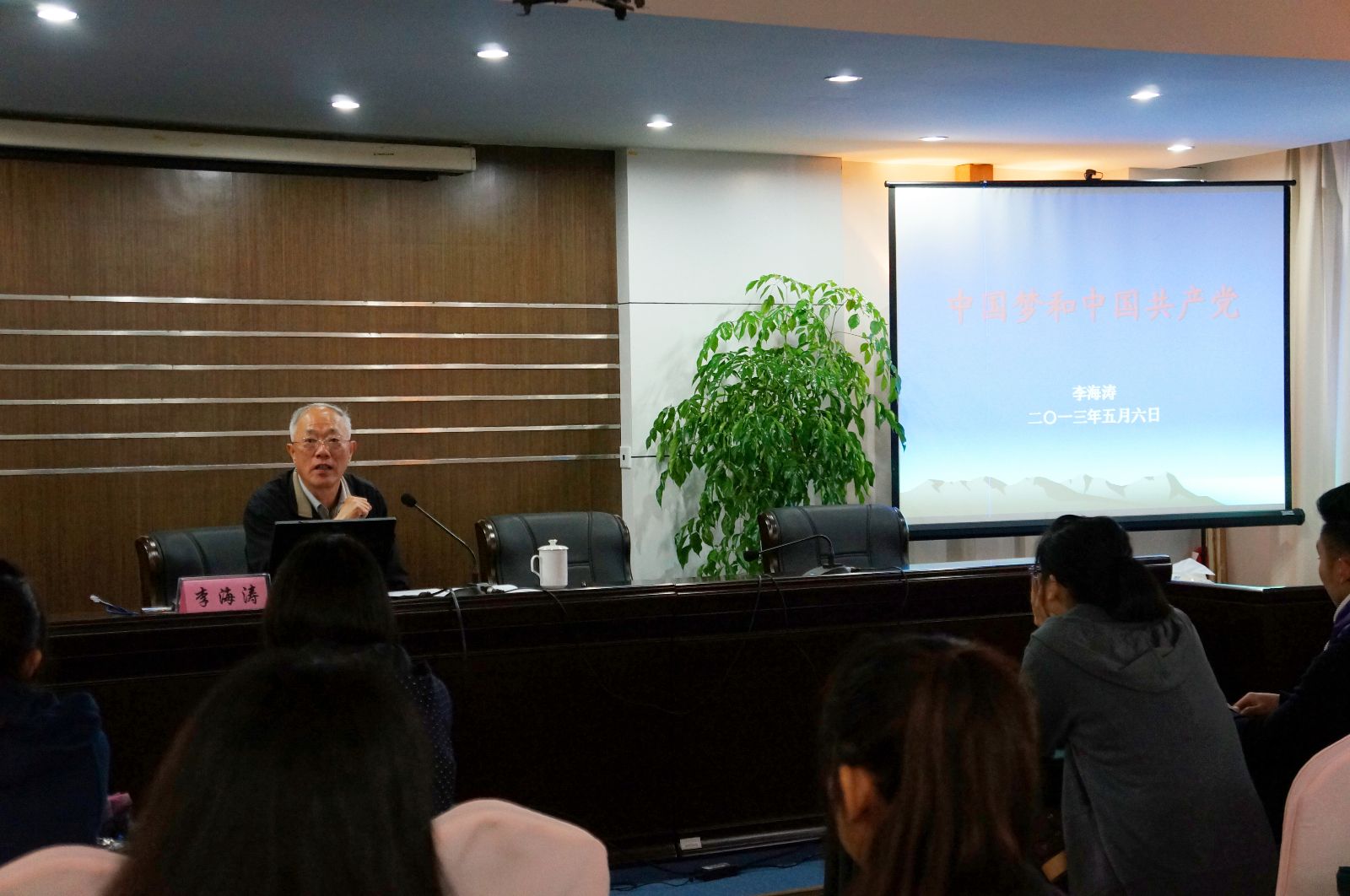 随后,李海涛作了“中国梦和中国共产党”的主题报告。他将中国梦与中国共产党相结合,深入浅出地剖析了中国梦的由来、内涵、目标以及中国梦深远的影响。他以生动的事例与理论知识相结合,告诉同学们中国共产党是实现中国梦的坚强领导者和顽强的实践者。希望同学们结合自身学习、工作经验,将自己的梦与中国梦有机结合,坚持“理论自信、道路自信、制度自信”的信念,志存高远,脚踏实地,为实现中国梦贡献正能量。主题报告激励了在座的所有学员,引起了学员们的共鸣,博得了阵阵掌声,使学员们懂得作为入党积极分子要具备的素质和要承担的责任。