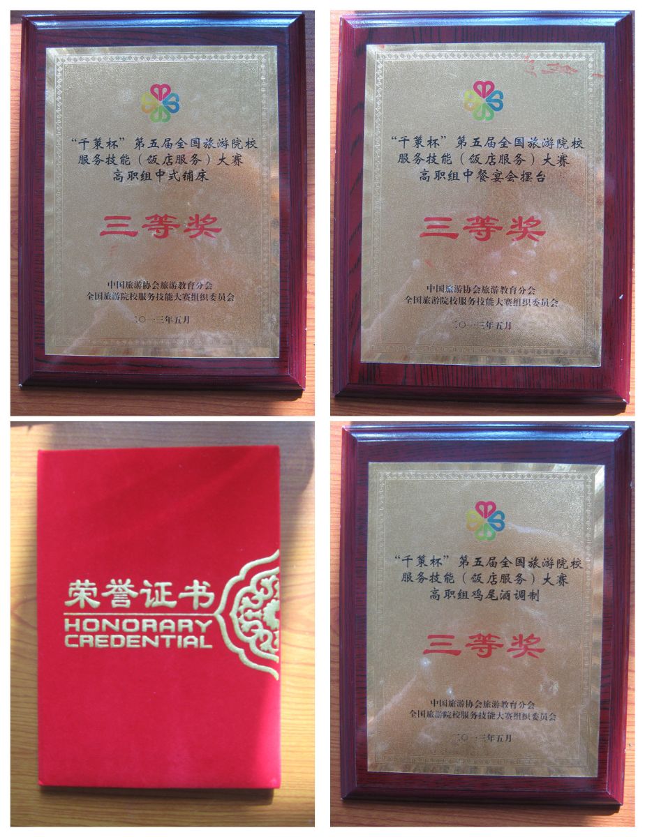日前,第五届全国旅游院校服务技能(饭店服务)大赛在山西太原旅游职业技术学院落下帷幕。此次大赛设有中餐宴会摆台、中式铺床、鸡尾酒调制、西餐宴会摆台四个项目,我院参加了全部的四个项目的比赛,按比赛规则,每个项目各派了一名选手。四名选手分获三个三等奖、一个优胜奖,其中蒋屹宏获得了鸡尾酒调制三等奖,宋雅倩获得了中餐宴会摆台三等奖,陶婷婷获得了中式铺床三等奖,张佳颖获得了西餐宴会摆台优胜奖。