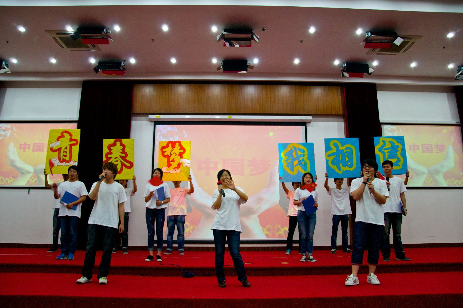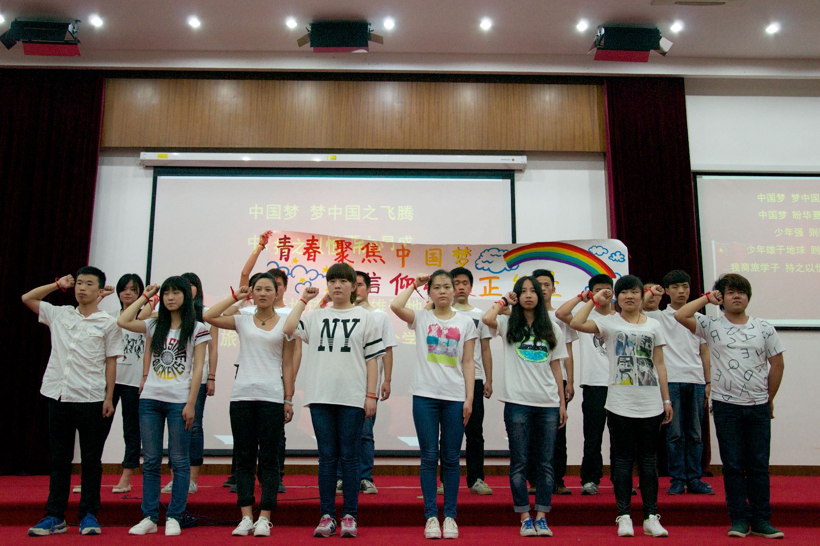 活动在青春庄严的团歌声中拉开序幕。团委负责人许昊用诙谐活泼的话语赞扬了积极参与活动的广大青年,并号召同学们把握珍贵的大学时光,多参与到校园活动中来,凝聚力量。随后各系部依次通过视频播放和现场表演进行主题团日展示,形式有歌曲、哑剧、小品、朗诵、宣誓等,充分展现了同学们对中国梦的理解,许下了青春誓言。最终,经过现场老师与100名大众评委的投票,应用外语系和动物科学技术系荣获此次比赛优秀组织奖。