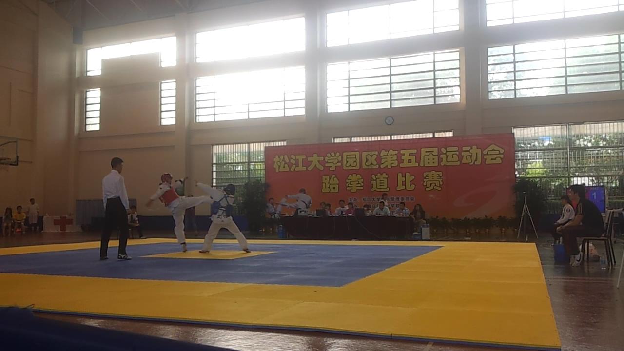 5月31日,由松江大学园区管理委员会主办的第五届大学生跆拳道比赛在上海立信会计学院落下帷幕。经过最后的角逐,我院跆拳道选手于宝夺得68公斤级竞技男子组亚军。