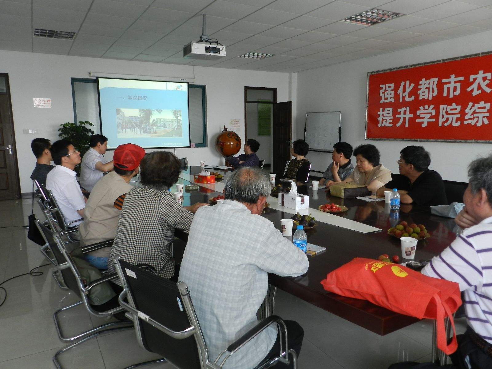 6月3日上午,市动物疫病预防控制中心离退休党支部的部份畜牧兽医专家,在曲玉明书记带领下一行11人应邀到我院动物科学技术系交流研讨“上海畜牧业发展与畜牧业兽医人才培养”的问题,系部主任、支部书记、副主任及部分教师代表参加了会议。