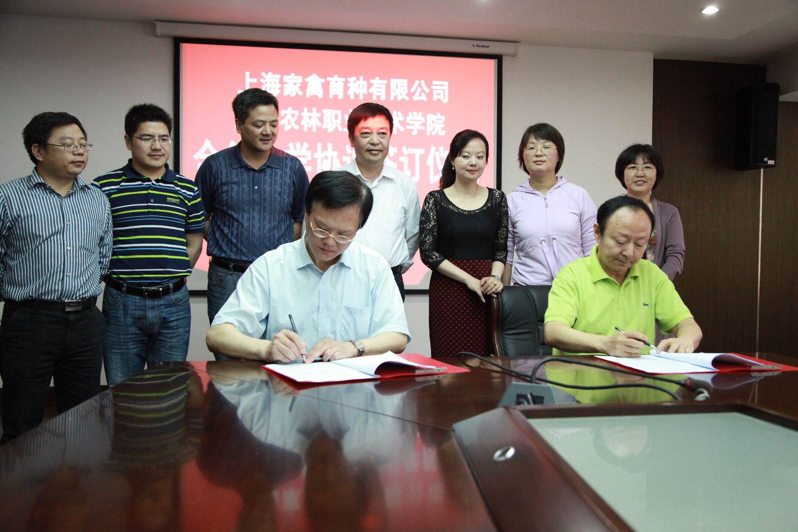 院长魏华与上海家禽育种有限公司总经理谢承光签订校企合作办学协议