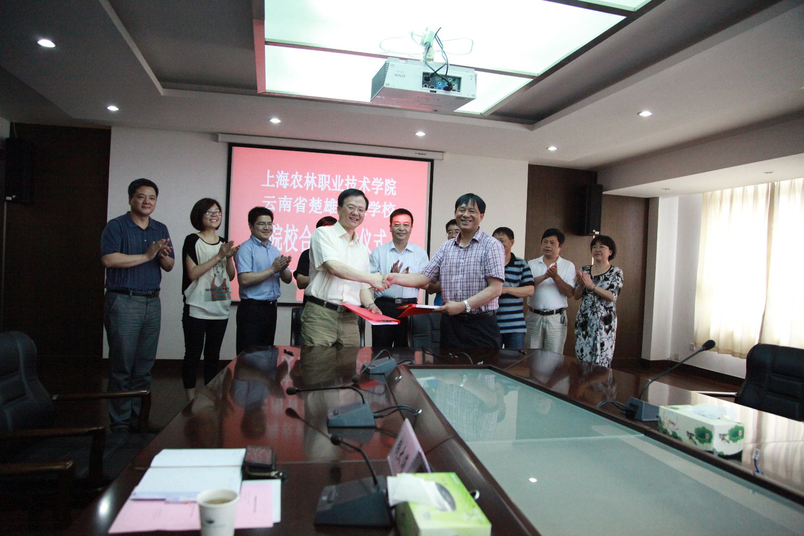 院长魏华代表学院与云南省楚雄农业学校李绍宝校长签订《上海农林职业技术学院对口支援云南省楚雄农业学校合作协议》。