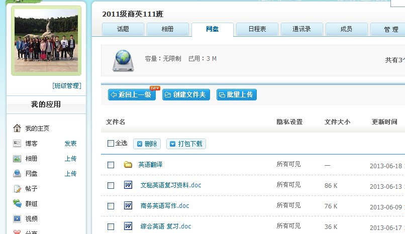 此项活动在临近期末考试之际推出,意在利用“易班”强大的网盘功能,鼓励各易班班级和同学在班级网盘上传任课老师提供的或者个人整理的考试复习资料,建立迎考“学习资料库”,实现资源的共享与用户的互动,也为同学们备战期末考试,创设有利条件、营造积极氛围。