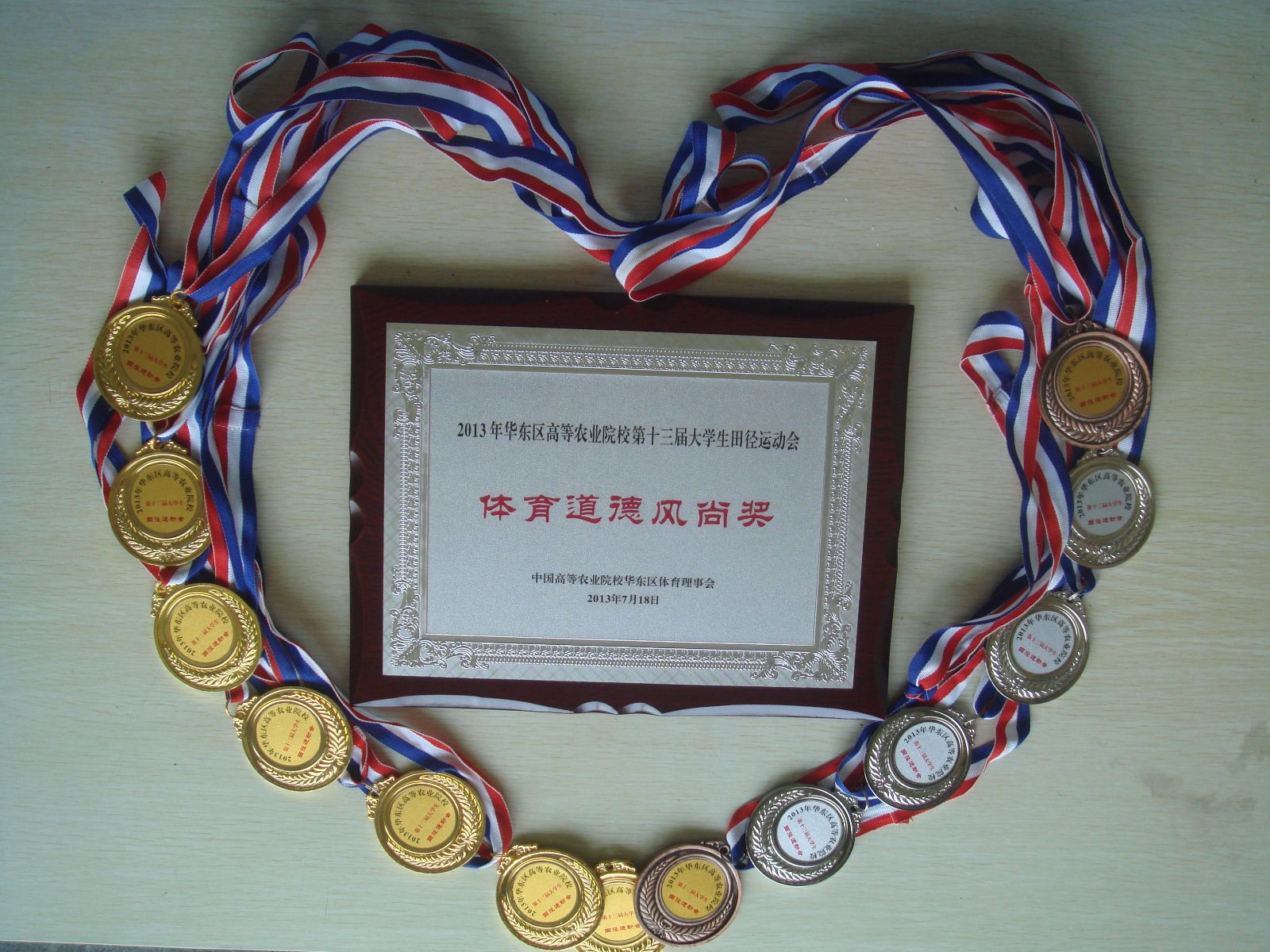 日前,2013年华东区高等农业院校第十三届大学生田径运动会在上海海洋大学举行。我院体育健儿表现优异,一举摘下16金、16银、5铜,并获得乙组男、女团体总分第一名,男子团体第一名,女子团体第一名,体育道德风尚奖等荣誉。