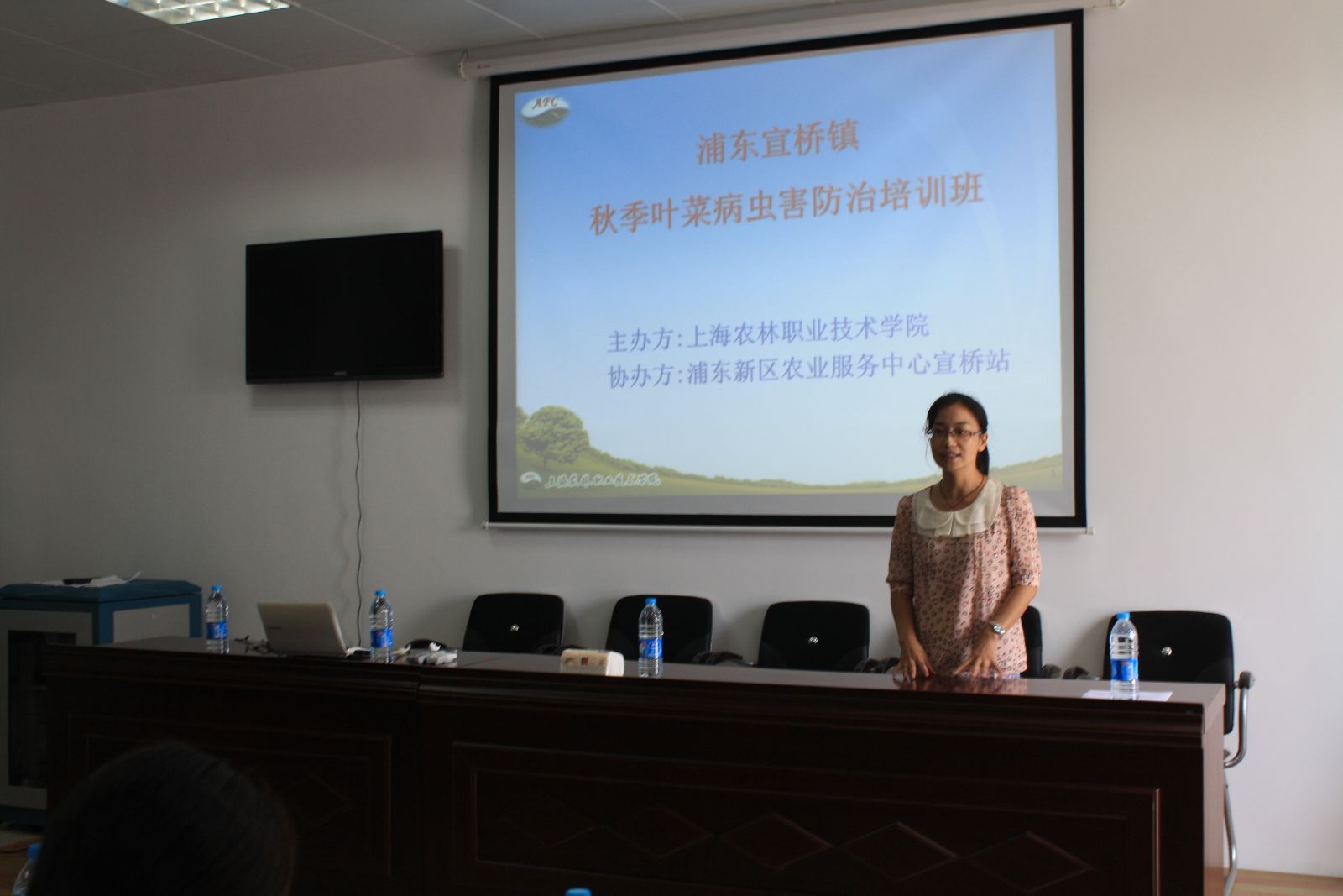 根据浦东新区宣桥镇蔬菜种植大户的实际需求,园艺园林系联合浦东新区农业服务中心宣桥站就秋季叶菜病虫害防治工作对农民开展培训。9月17日上午在宣桥镇的培训活动上,学院邓建玲老师告诉大家为农服务是我们学院的重要工作之一,本次以绿叶菜主要病虫害及防治要点为主题和大家做个交流,作为开始,以后将会根据大家进一步的要求为大家服务。