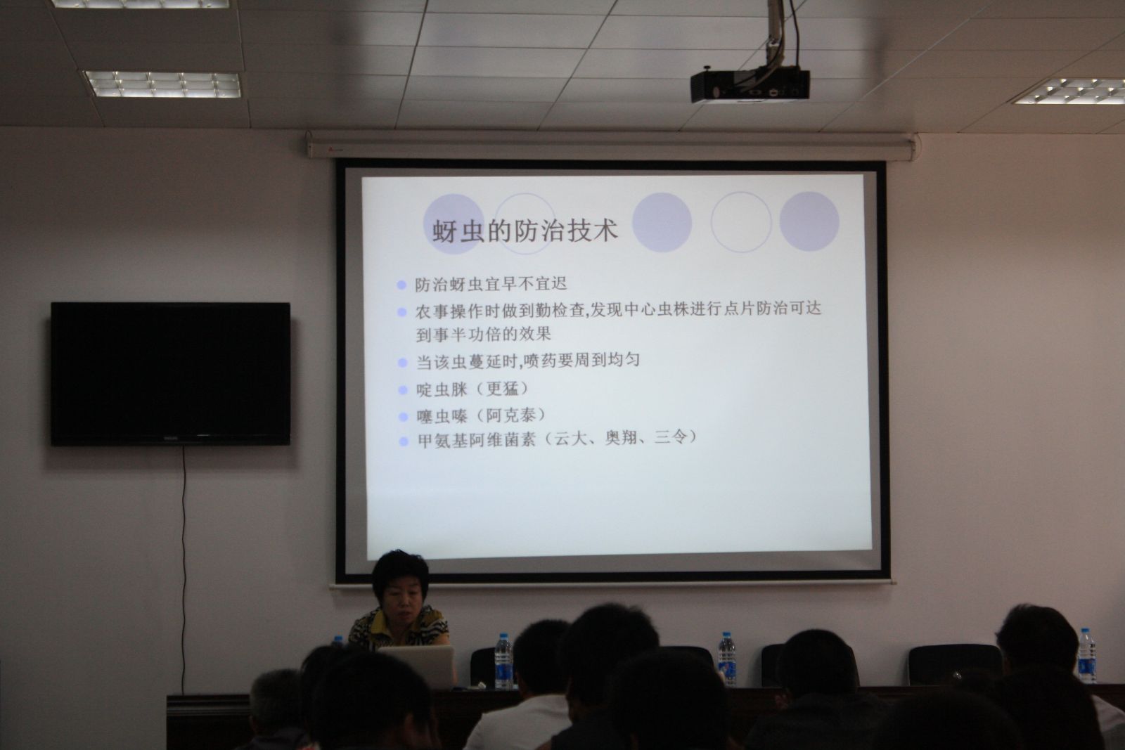 为使本次培训更加符合农民的实际,学院还特意邀请到了浦东蔬菜技术推广站的丁伟华高级农艺师,培训班上丁伟华老师深入浅出地给大家介绍了秋季绿叶菜主要病虫害的防治措施。
