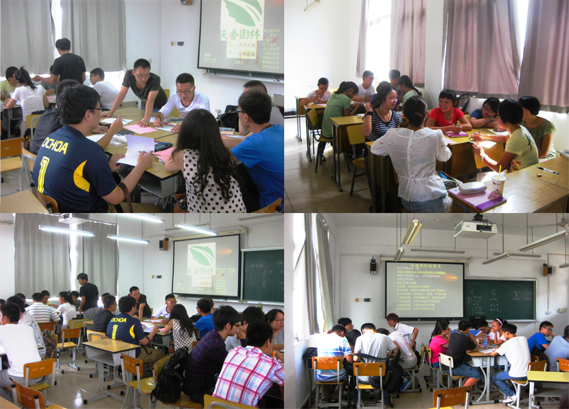 本学期,结合特色校精品课程建设的需要,成文竞老师对《植物基础》课程进行了较大的改革,引进了杭州天香园林的“模拟公司制”教学组织模式,每个“公司”6人左右,用30分钟的时间,讨论决定总经理、副总经理、设计部经理等人选,共同决定公司名字和口号,并绘制公司标志,使学生在第一次课就拉近彼此的感情,形成班级团结和竞争的学习氛围。教学以实训项目为主,学生在公司团队的运作下完成主要项目和任务,以掌握自主鉴定植物的核心技能,为学习园林树木、园林花卉、植物造景等后续课程奠定基础。“模拟公司制”实践下来,同学们始终保持着很高的学习兴趣和积极性,能够自觉在业余时间采集标本、观察植物、拍摄照片、制作PPT,团队精神、观察动手能力和沟通表达能力在实践中也得到了较大提升。