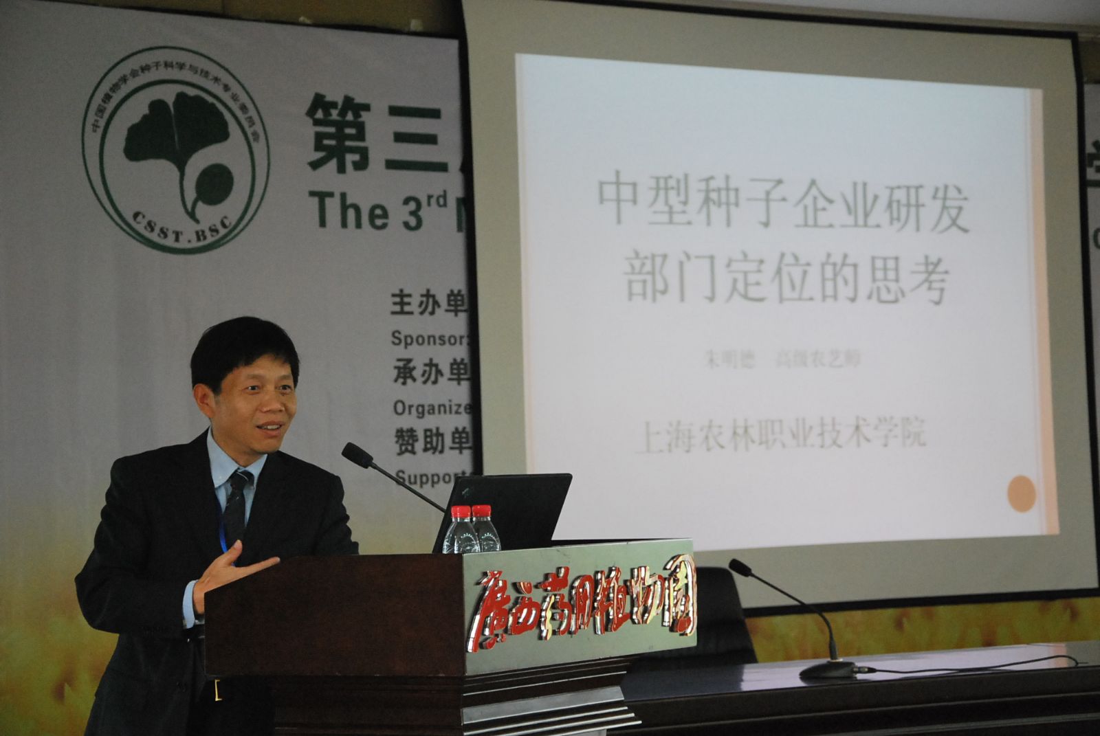 第三届全国种子科学与技术学术研讨会于10月18-21日在广西南宁召开,大会主题是:种子科学技术创新与中国种业。学院种子专业教师朱明德、周鹏参加了会议。朱明德老师就中国中型种子企业研发部门功能定位方面的问题做大会交流发言。