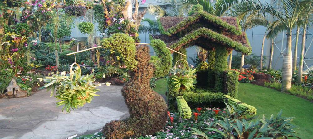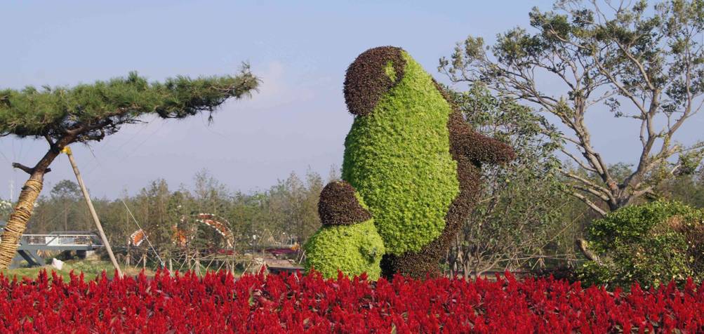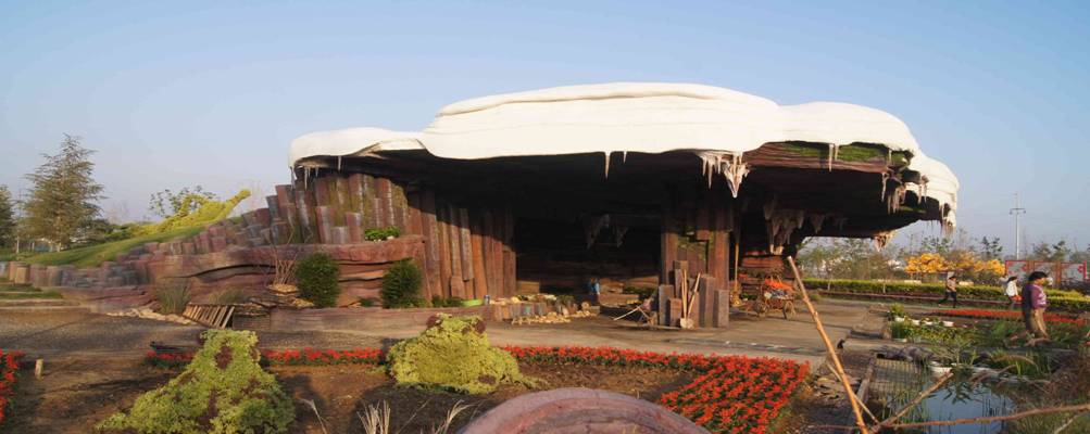 3、此次花博会上最新的设计理念和工程施工工艺我们要详加整理,消化吸收后融入我们今后教学标准制定和具体的教学实践中。例如大量绿色雕塑的使用为展会增添了不少亮色,特别是上海馆的立体绿化非常大气,在今后的教学实践中对此要有的放矢,对绿色雕塑加以分析其设计制作过程;吉林馆的石蛋、溶洞、冰柱、立方矿石结晶体等做得惟妙惟肖,其GRC工艺在园林工程设计施工上也是很好的一个教学运用案例;盆景园中置于水池中大型斧劈石盆景,浑然大气,我们在今后的盆景教学中也可大方引用示例;河北馆带来的苹果果树盆景中结的果实也可直接食用,反观上海是否能在柑橘、水蜜桃等品种上做类似开发呢?这都值得深深思考。
