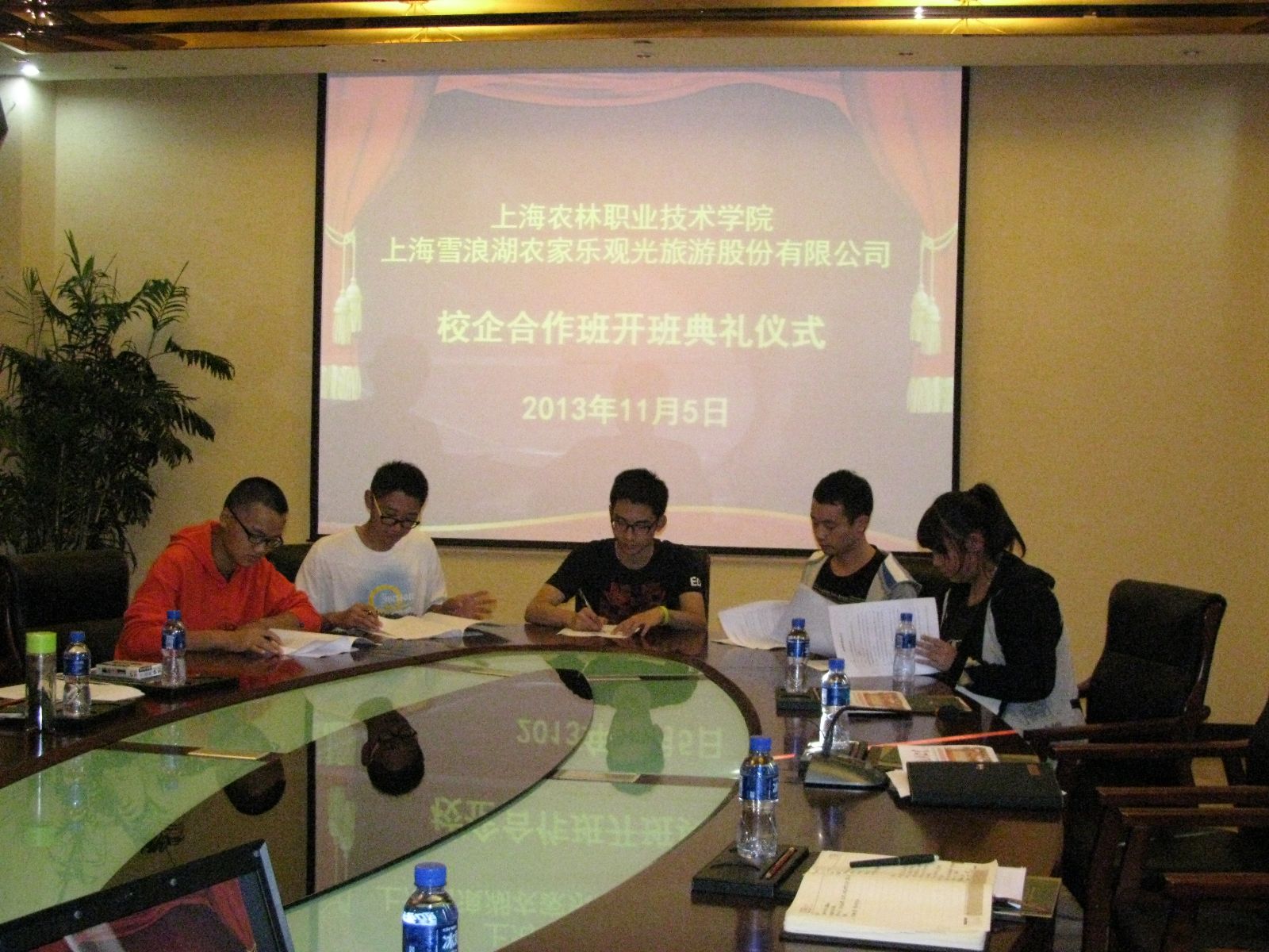 上海雪浪湖度假村的马燕经理带领学生参观,并进行详细讲解公司的概况和文化底蕴。参观后,学生与“上海之根”雪浪湖进行了“教育培养协议书”的签约仪式,会上由高萍对本次签约的观光131班学生提出了5点要求: