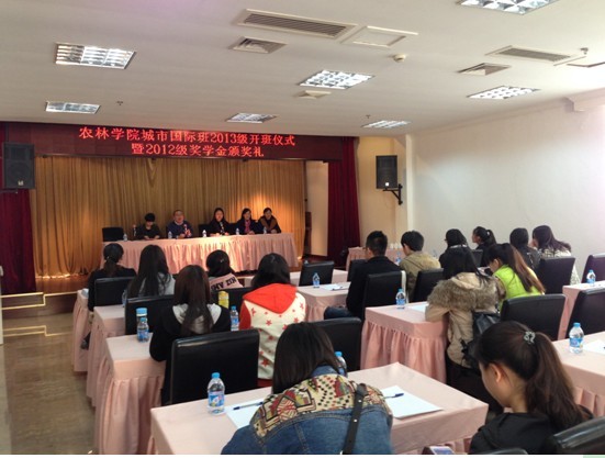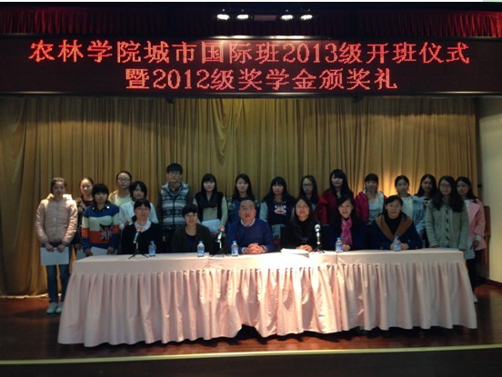 为了加强校企合作,进一步提升学生的专业素质,学校与上海城市国际企业发展有限公签订了校企合作订单培养计划。近日,由农业经济管理系主任高萍、专业带头人范玲玲、商务教研室主任魏东霞、班主任张禕及2012级辅导员张婧敏,组织带领城市国际班131班16名学生和2012级城市国际班17名学生来到了上海城市国际企业发展有限公司的会所举行开班仪式和奖学金颁奖典礼。