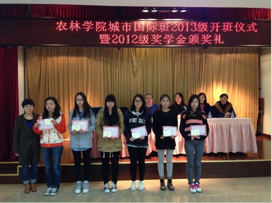 签约仪式结束后,为了激励城市国际班的学生能在校刻苦学习,在企业认真工作,企业举行了2012级国际班的奖学金颁奖典礼。对考试通过CET4的3名学生和通过CBET3商务英语证书考试的12名学生颁发奖状和奖学金,对在企业实践实习中表现优秀的2名学生和表现良好的4名学生颁发了奖状和奖学金。仪式结束后,企业组织全体师生进行了蔬菜采摘活动。
