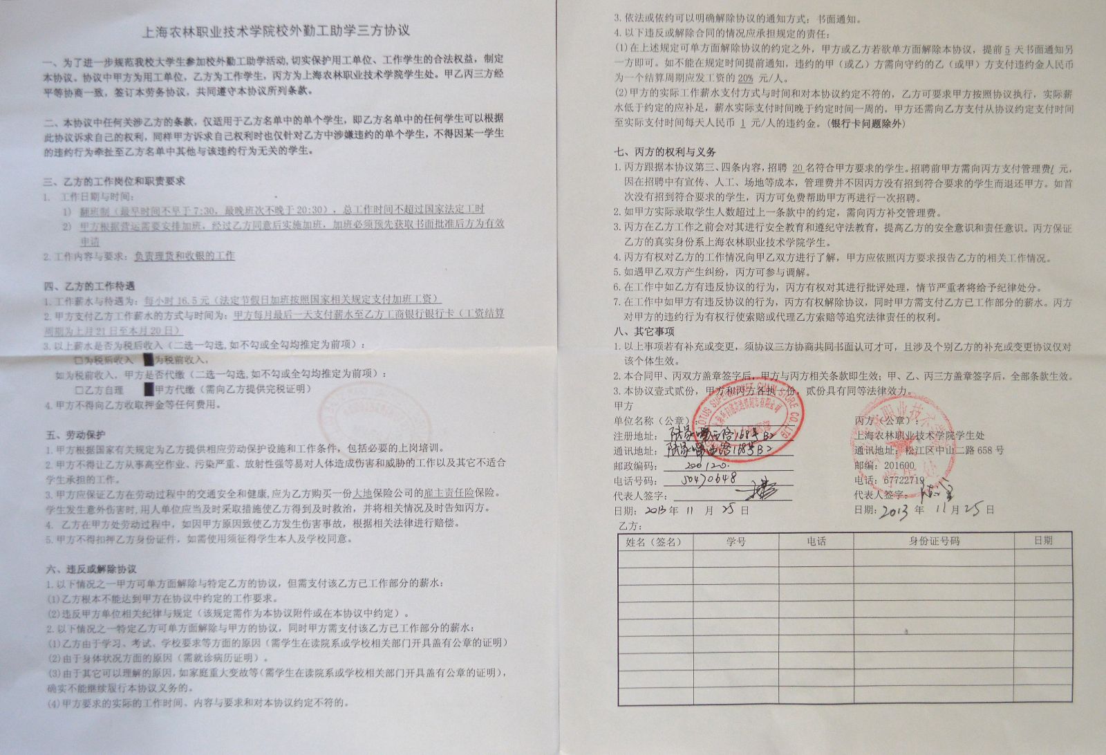 近日,经过多方的商谈,学院资助中心与两家大型企业--屈臣氏上海分公司、上海易初莲花连锁超市有限公司签订了校外勤工助学三方协议。学院家庭经济困难学生勤工助学将不再仅仅局限于校内岗位,而是有了校外引进的“外援”。