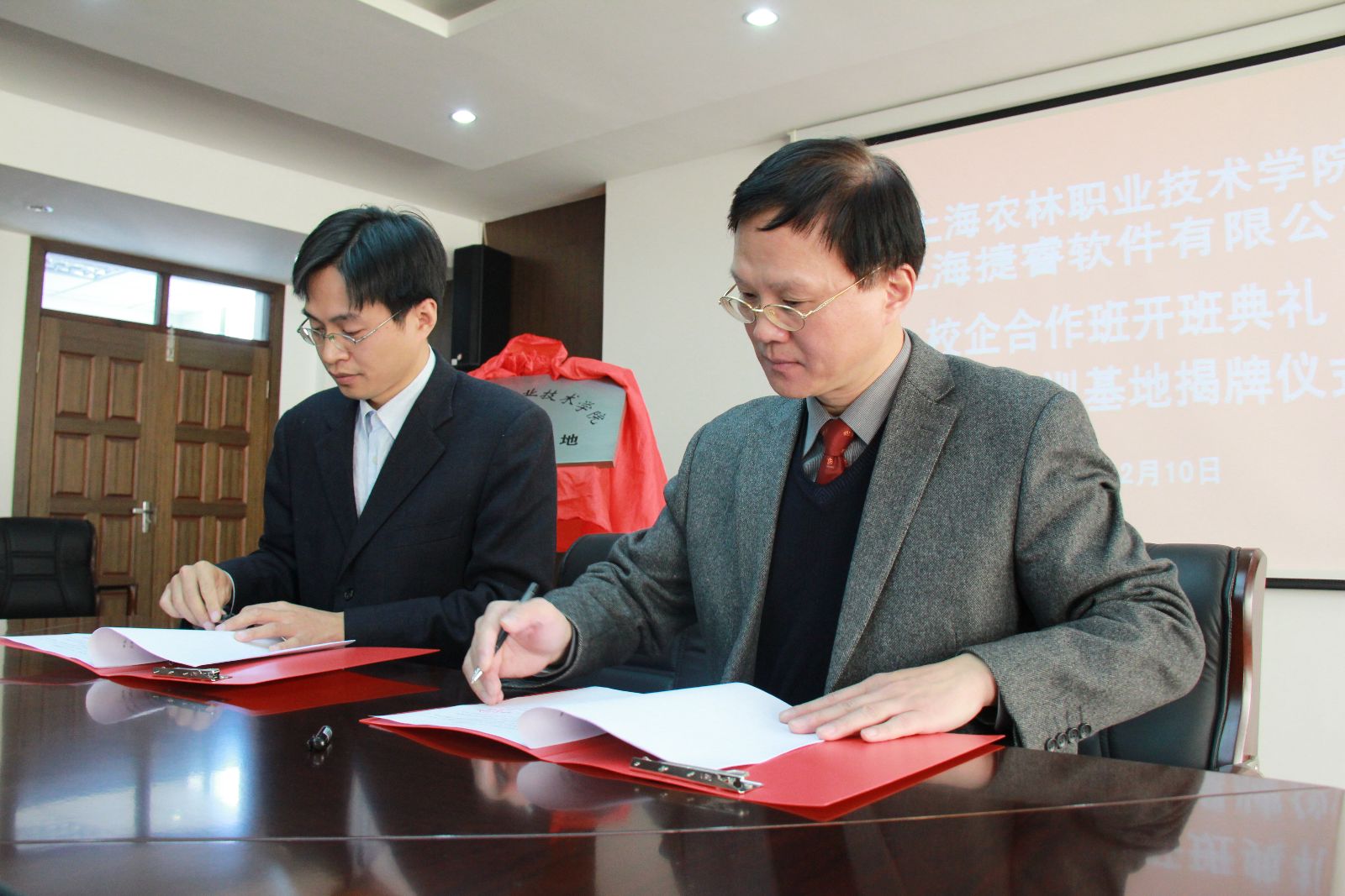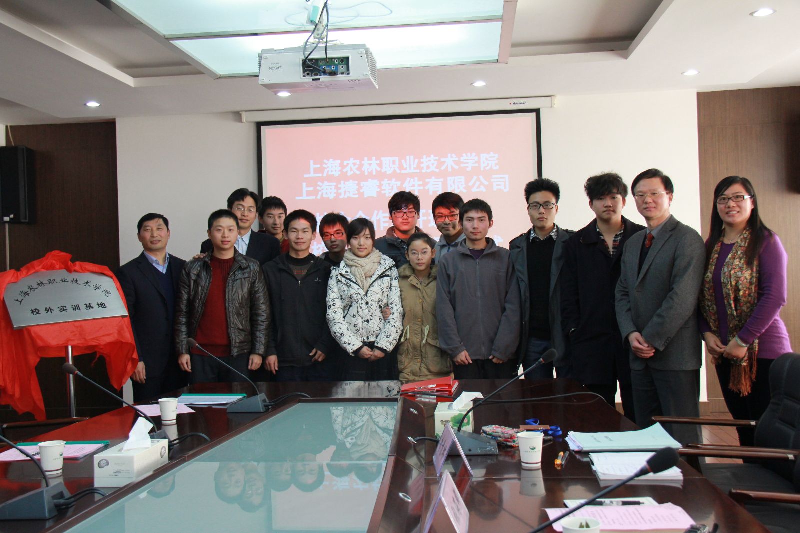 12月10日上午,校企合作“捷睿软件班”开班典礼暨校外实训基地揭牌仪式在1101会议室举行。院长魏华,上海捷睿软件有限公司王坚剑总经理、陈皆欢副总经理,学院校企合作办、宣传处、教务处、农信系负责同志、相关教师及10名入读该班的学生,出席了典礼。校企合作办主任辛雅芬主持仪式。