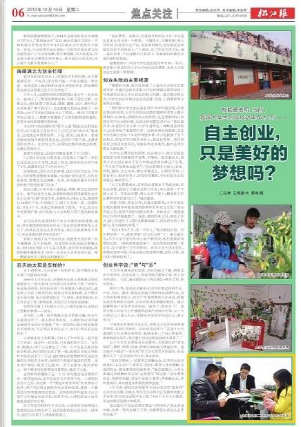 12月10日,松江报06版焦点关注报道了环境112班涂晨阳创业。报道如下: