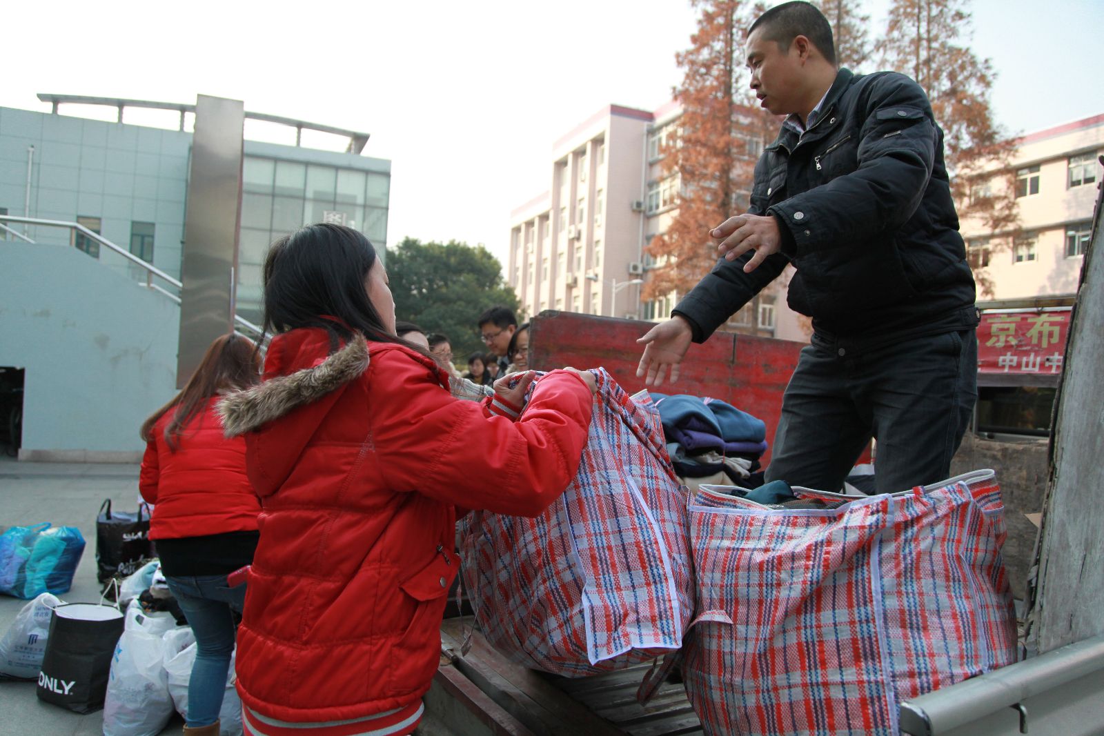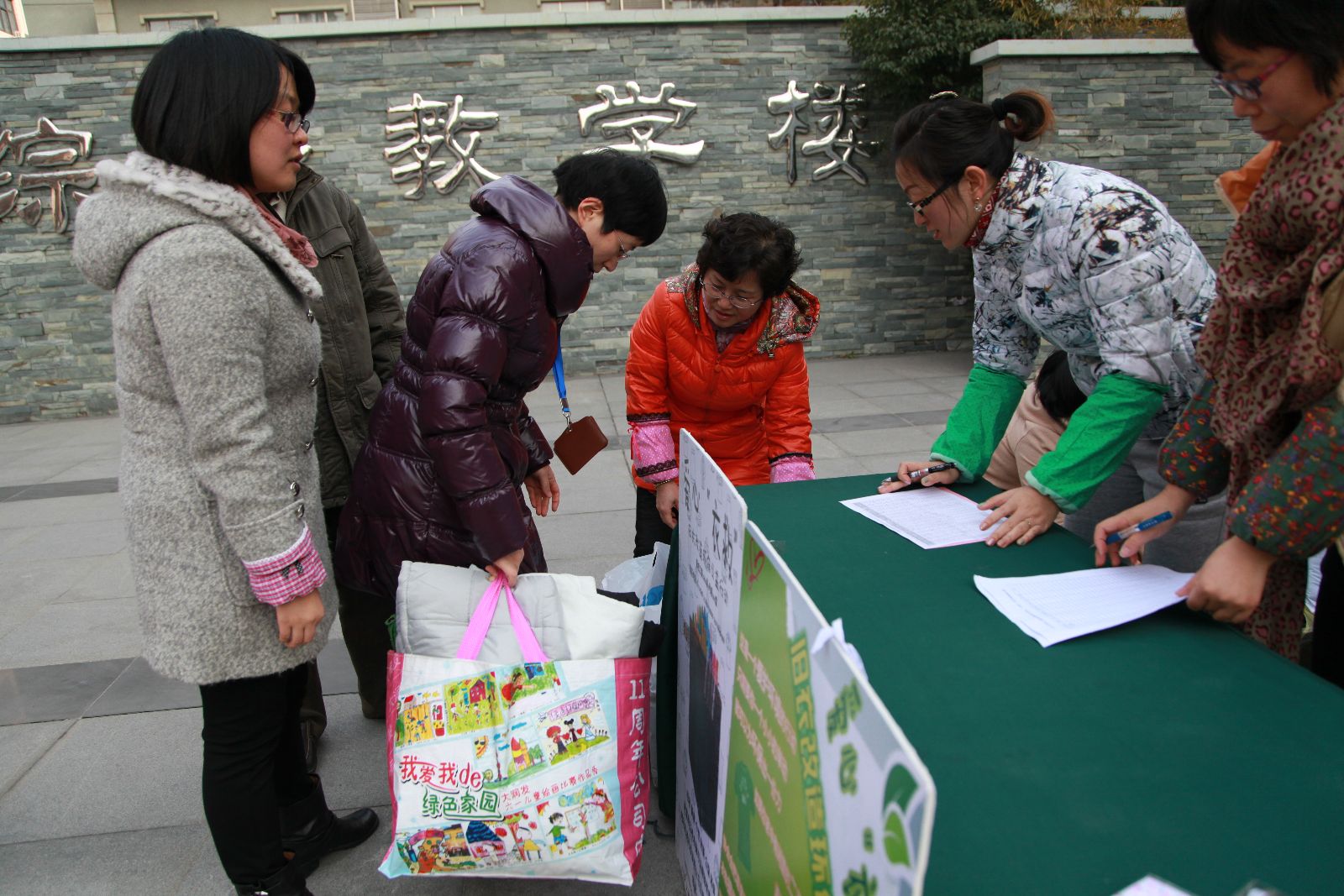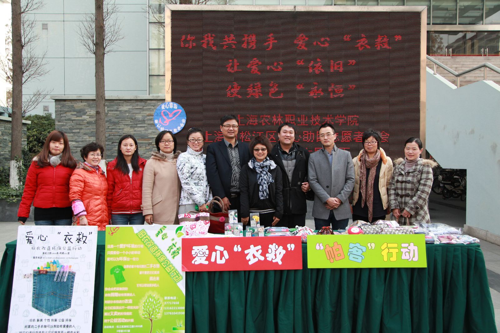 12月13日中午12点半,众多教职工聚集在综合教学楼前的大屏幕下。原来,这里正在热火朝天的进行着“爱心‘衣救’”活动。