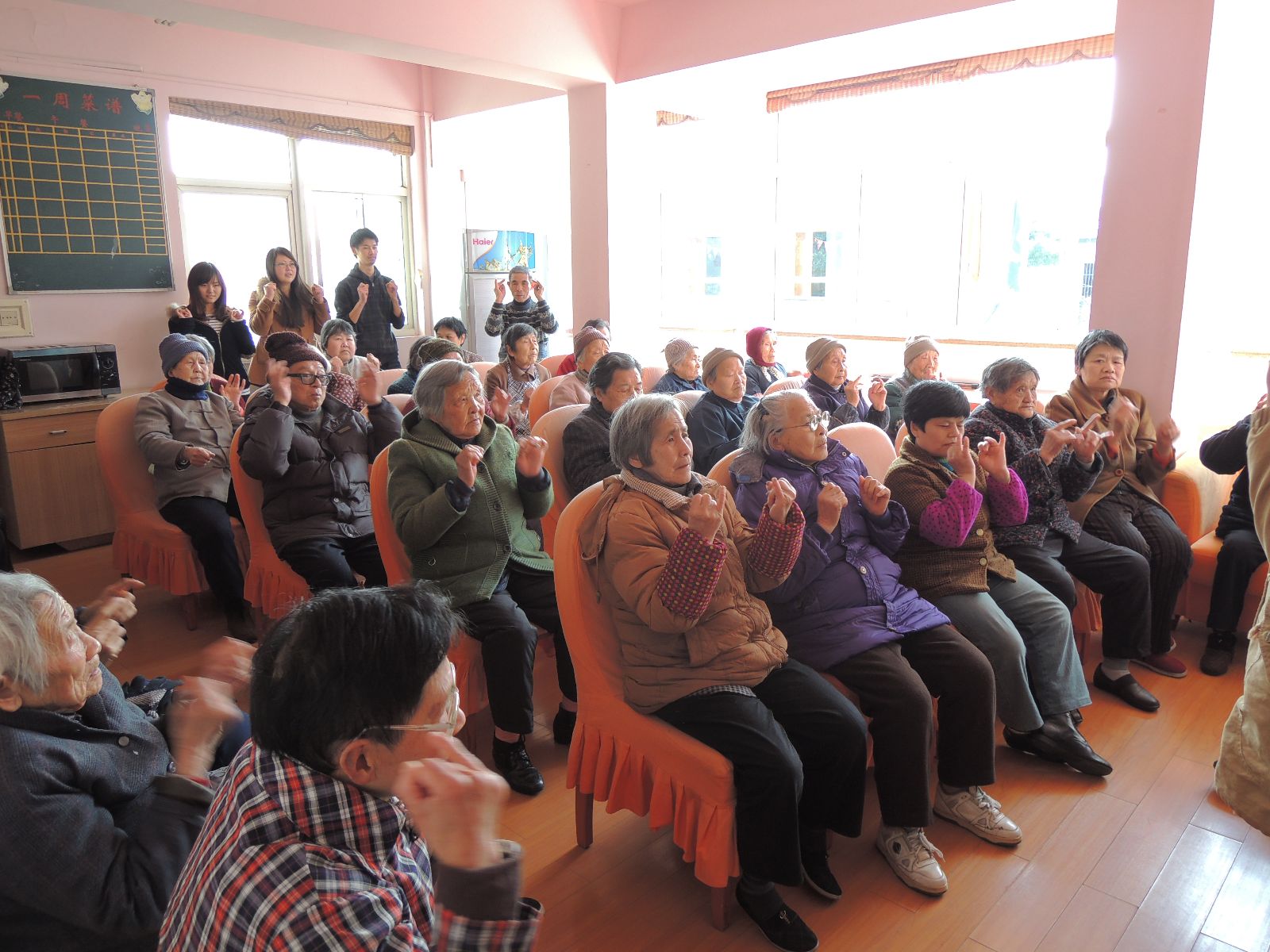 活动过程中志愿者发挥了大学生朝气蓬勃、奋发向上的精神,主动、负责、热情、有爱心,得到了老年人的肯定与喜爱。