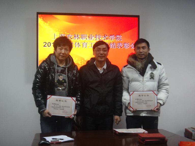 基础部宋常英书记宣读了《关于表彰2012-2013学年上海农林职业技术学院优秀体育工作者及体育积极分子的决定》,并给活动体育积极分子颁奖。