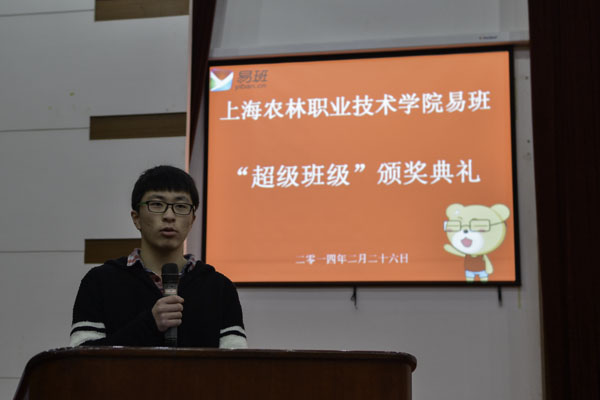 首先,学院易班工作站站长侯伟伟同学发言,对活动开展情况以及各系各班级在“超级班级”活动中的表现进行总结,并介绍了易班工作站2014年的工作重点和计划。然后,学院易班辅导老师张雷老师宣读表彰决定。在本次活动中6个班级荣获超级班级殊荣,其中设施132班获特等奖,动科132等五个班级获优秀奖,园艺园林系获优秀组织奖。随后领导老师为获奖班级和系部颁发了奖状和奖品。