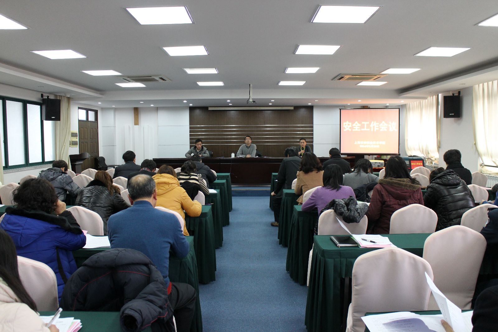 费国强宣读了学院被上海市综治委校园及周边治安综合治理专项组授予“2012-2013年度上海市安全文明校园”称号的通知,肯定了2013年安全生产工作取得的成绩。其次,结合目前教育系统的安全形势,针对学院下一步安全稳定工作提出五点要求:一是加强领导与沟通,各部门负责人要切实担负起安全管理职责,带头组织开展安全检查,发现问题及时上报,确保信息的上传下达;二是加强教育管理,切实推进安全教育进课堂、进办公室、进实验室,提高师生安全防范意识;三是强化“三防”建设,夯实基础,稳步推进学院“三防”建设;四是加大排查力度,对可能发生的安全事故做到早发现、早处理;五是完善应急预案,从实际出发,制定切实可行的校园突发事件应急预案,并组织人员进行学习和演练,增强应急综合能力。
