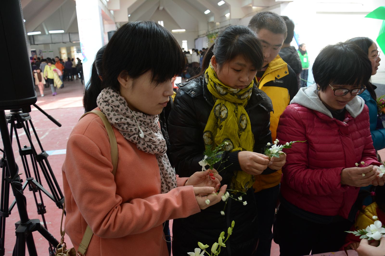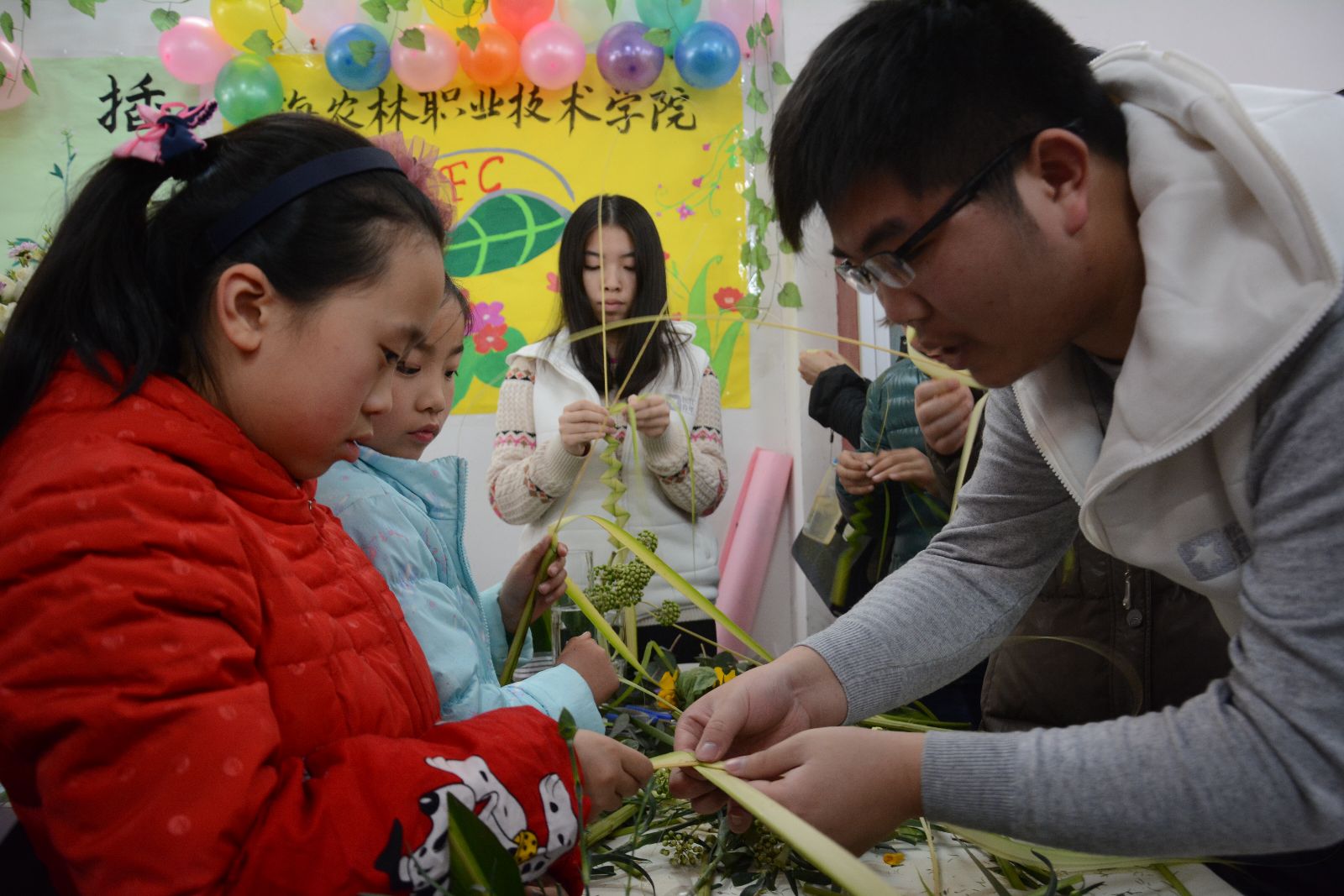 本次活动由团区委组织,松江区各街镇都选派了具有特色的项目参加,不仅是一次创意志愿服务活动,更是一次青年人很好的交流学习机会。我院插花社同学凭借其独特的创意利用一朵朵玫瑰、向日葵、水菊和一根根水拉叶等花材,经过同学的巧手搭配编织出了形式多样的插花作品,或活泼跃动,或淡雅宜人,赢得了众多参观人群的关注,特别是很多孩童也纷纷拿起花材和志愿者们共同体验插花乐趣。