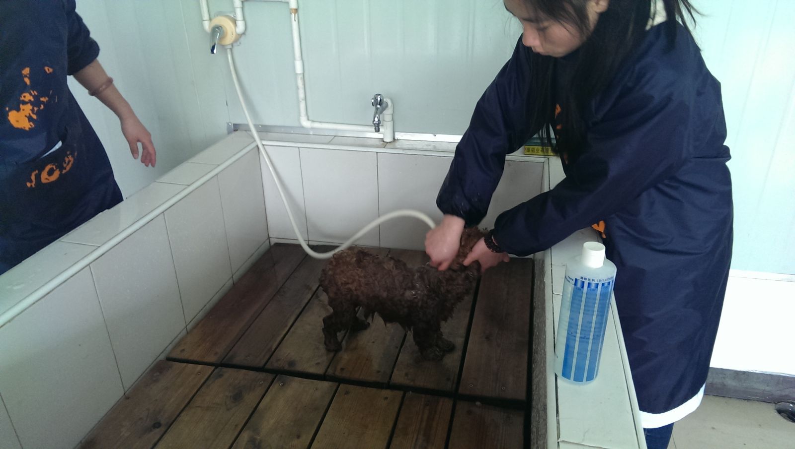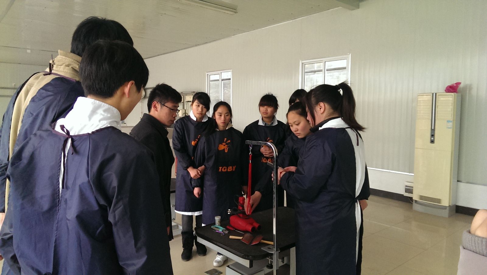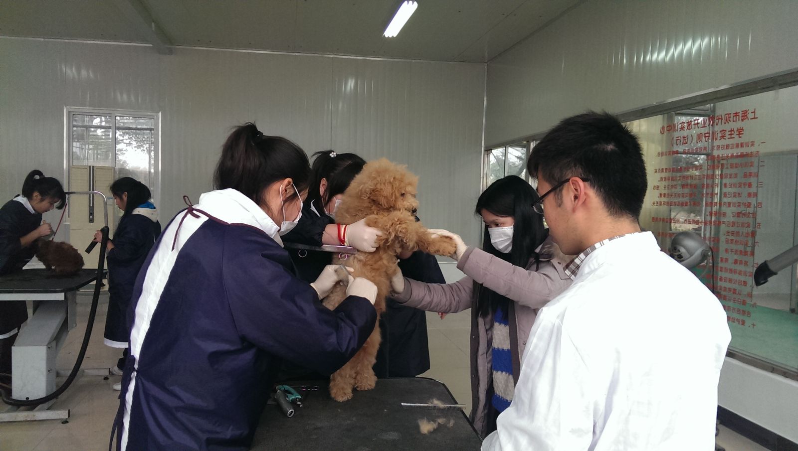 上午10点,8名同学和2名老师一同抵达学院五厍实训基地。实训基地王瑞雪老师首先带领同学们参观了基地的实验犬养殖情况,详细介绍了宠物美容的整个流程和注意事项。同学们分组后为实验犬进行梳理毛发、清洗、吹干等护理,各项步骤都有条不紊的进行。活动过程中同学们也遇到了很多问题:有的犬只因毛发打结,很难梳理;有的犬只因活泼好动而不配合,但是凭借扎实的专业知识和对动物的爱心志愿者们齐心协力共同完成了护理工作。