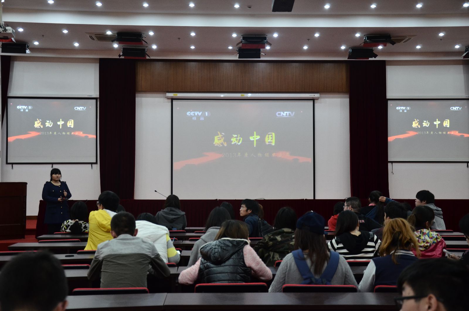 为深入贯彻落实党的十八大和十八届三中全会精神,积极培育和践行社会主义核心价值观,近日,院团委组织200余名团学干部观看了“感动中国2013年度人物颁奖盛典”视频。