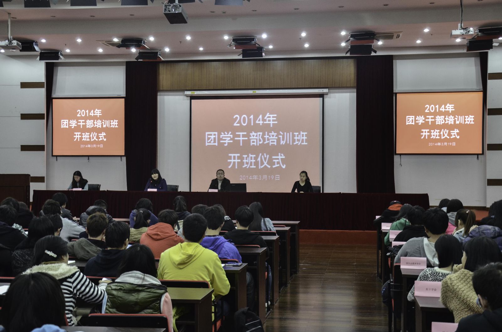 为使广大团学干部在思想意识上进一步明确自身职责,外塑能力,内强素质,进一步加强团学干部队伍建设,日前,2014年团学干部培训班正式开班,200余名团学干部与干事参加。