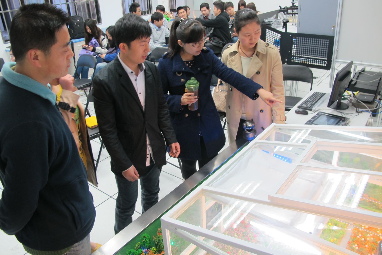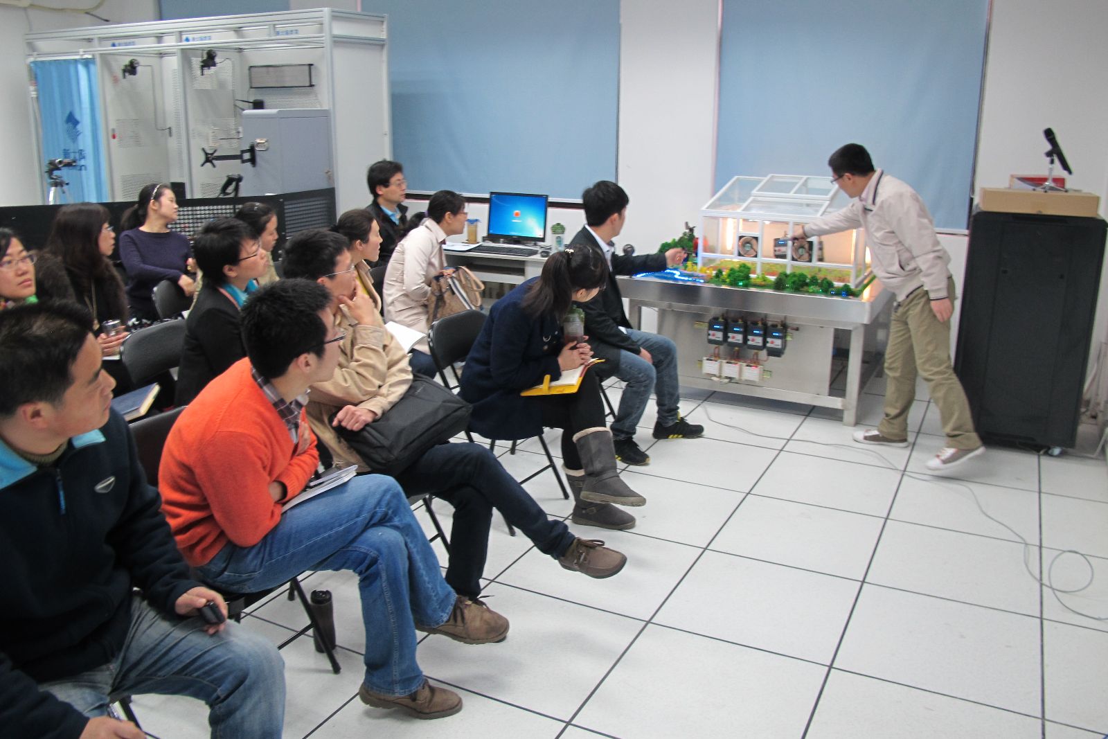 培训由设备供应商之一的北京奥尔斯电子科技有限公司的3位工程师讲解,针对农业物联网应用现状与技术要点进行了清晰阐述,围绕农业大棚沙盘和无线传感实验箱两类设备的原理和操作进行了详细介绍。培训现场,师生对农业物联网的技术应用都表现了很大的兴趣,还共同体验了温度、湿度、光照等环境数据实时监测以及风扇、照明、灌溉等电气设备远程控制的实现过程。