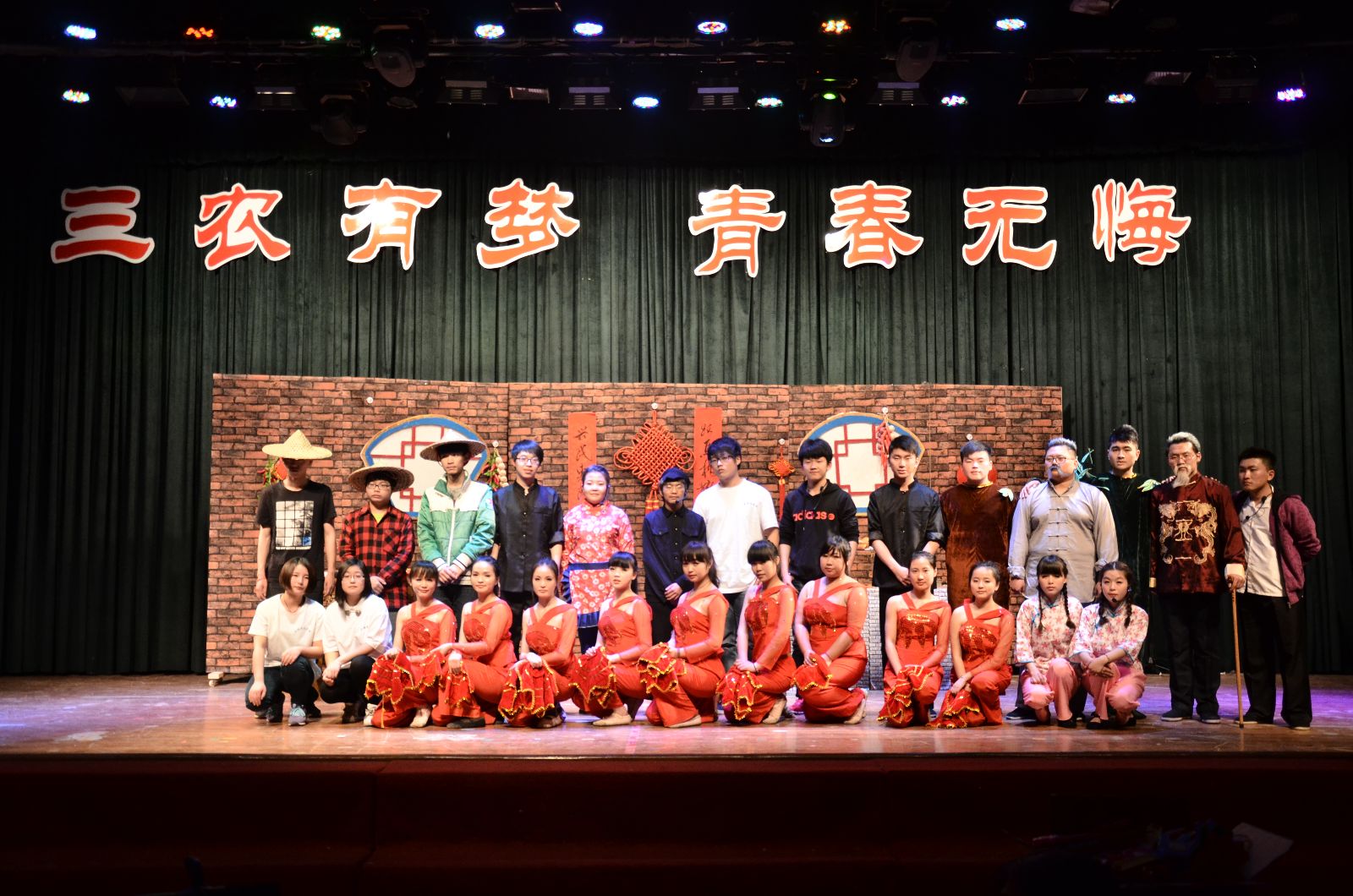 日前,由我院大学生艺术团和时光话剧社同学们带来的话剧《三农有梦,青春无悔》再次进行了公演。学生处处长陈谊和400余名师生观看了演出。
