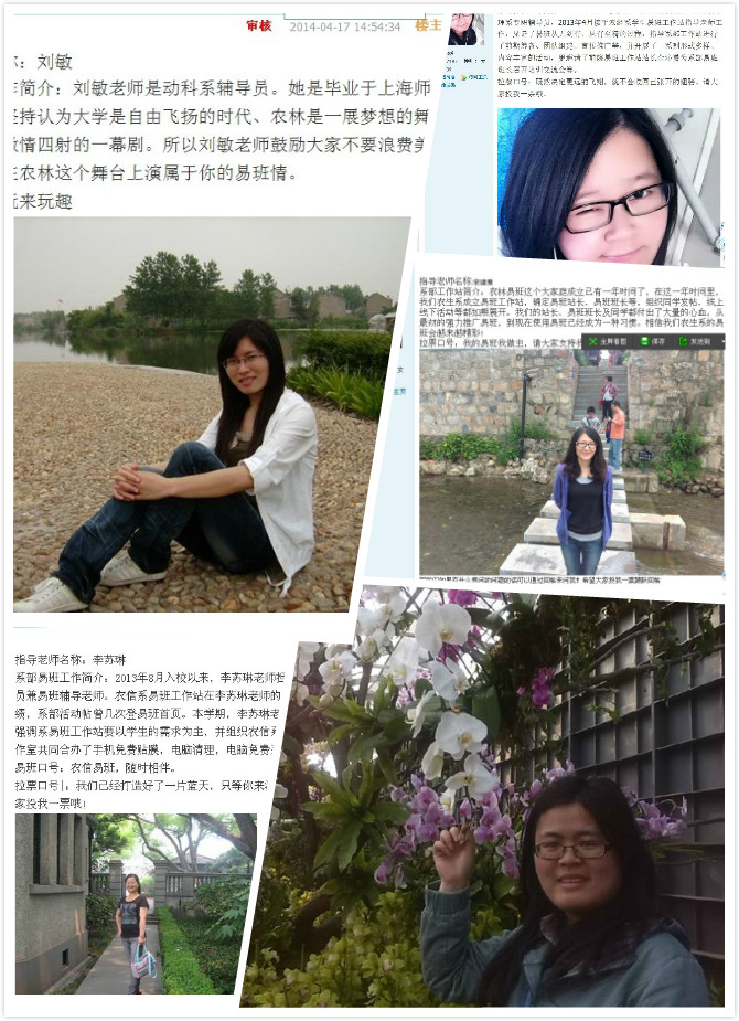 活评选以网上投票的方式进行。参加活动的老师都是学院和系部负责易班工作的指导老师们。宣传阶段,他们首先将各自的个人、工作信息,以及宣传口号,个人生活照发帖公布在易班网校级平台进行个人宣传。然后,每个学生可以在投票贴中为他们喜爱的指导老师投一票,时间是4月18日至5月18日。