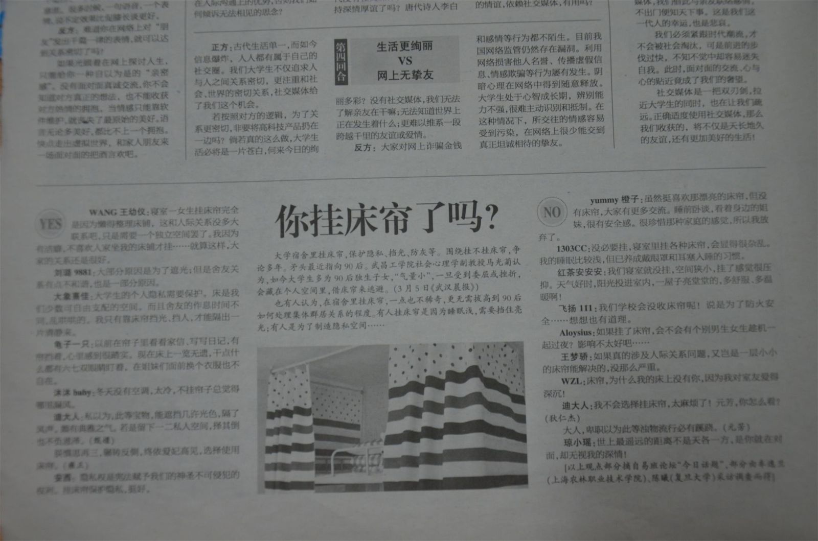 图1 《新民晚报大学生版》第一期刊登记者团作品《你挂床帘了吗?》