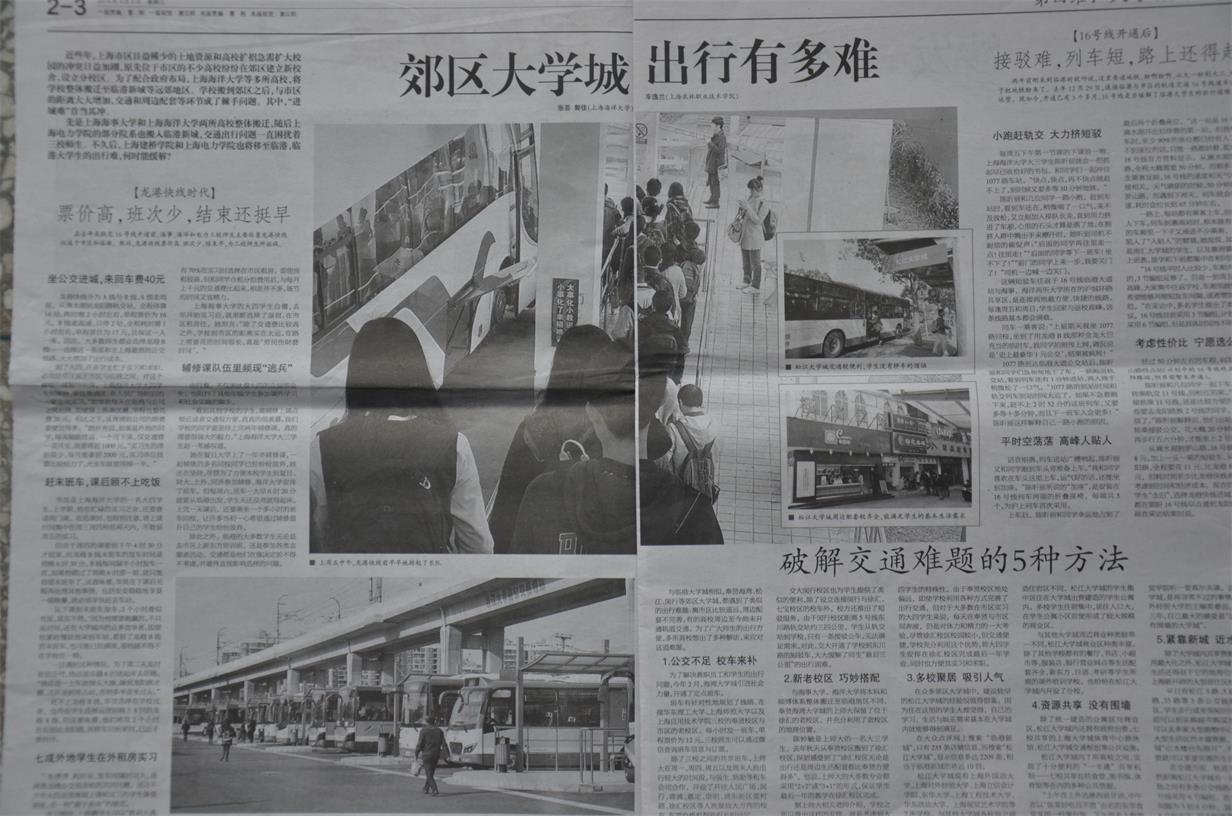 图2 《《新民晚报大学生版》第二期刊登车逸兰作品《郊区大学出行有多难》