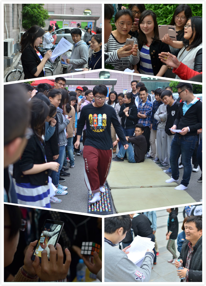 比赛开始前,每个队伍通过抽签决定出发次序,依次完成“站长去哪?”、“另类赛跑”“智力竞答”等共五个智力和体力相结合的活动环节,成功完成一项活动后才可领到下一关任务卡,最先到达的优先开始比赛,时间最短的胜出。赛前网上投票环节中,园艺园林系参赛队获胜,在计分中占有优势,扣除20秒。“站长去哪”环节中,同学们依靠自己的智慧在奔跑的同时寻找站长的踪迹,并与站长合照上传易班才算通过。“另类赛跑”环节中,同学们要忍受了骇人”的疼痛,依照规则完成往返接力和跳绳等任务。“智力竞答”活动中问题包罗万象,包括娱乐新闻、流行音乐还是历史名著在我们精心设计的“题库”里都有涉及,前期的准备让师生们都顺利通过,同时也丰富了各自的知识储备。