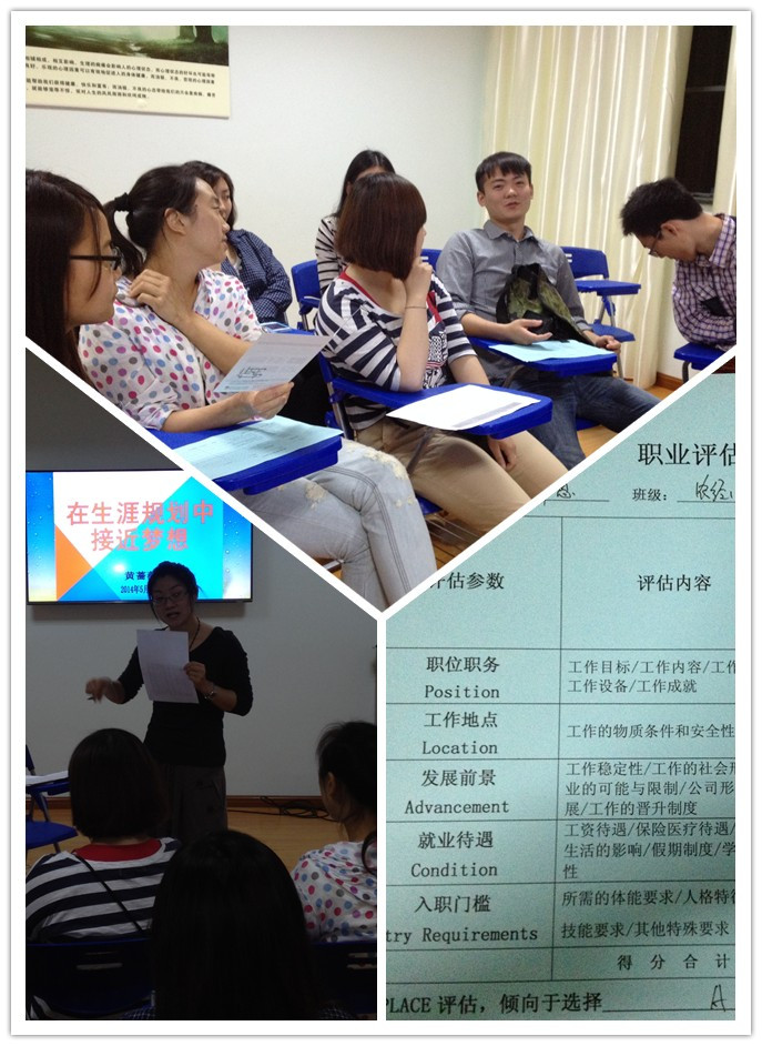 为此,5月22日晚,心理咨询室黄蔷薇特为农经系学生开设了主题为“在规划中接近梦想”的团体辅导活动。本次活动包含“鱼与熊掌的纠结”、“问题面对面”、“职业评估PLACE”三个环节。在“鱼与熊掌的纠结”环节中,通过互动游戏引导队员们明晰自己的实习意向——你最希望从实习中收获什么?是要见见世面、锻炼自己的能力,还是积累社会经验,抑或是要直接为将来的工作做铺垫?同时明确,“随波逐流”的从众心理并不是职业规划的有效方式。